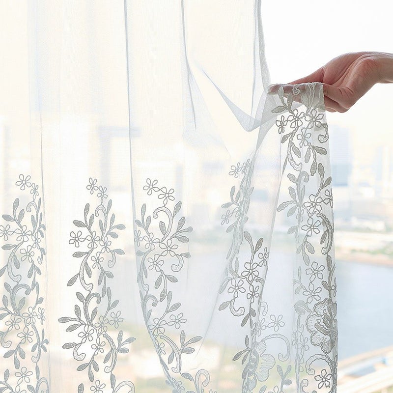 さらりとした優しい手触りと、軽やかな風合いのレースカーテンです。毎朝触れるものだから、肌当たりが良くて思わず触りたくなる手触りが嬉しい。つい撫でたくなるような、刺繍ならではの凹凸感もお楽しみください。