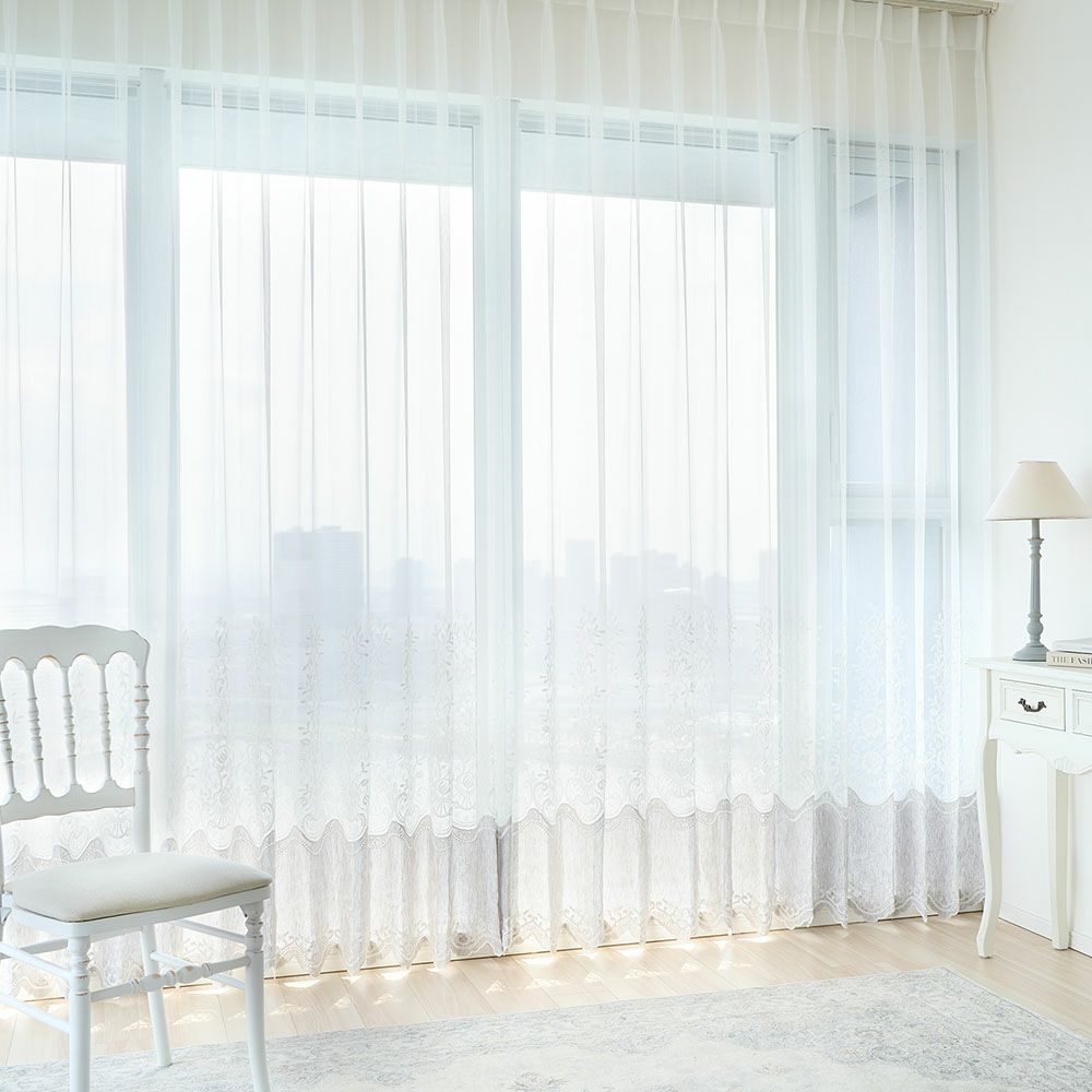 日常を「特別」に変えてくれる、継ぎ目のないシームレスなレースカーテン。通常、横幅の大きなカーテンには生地の「継ぎ目」が入ってしまいます。しかし、生地を横方向に使うシームレスカーテンなら、大きなサイズでも継ぎ目無しの美しい仕上がりに。どこまでも美しく広がるレースカーテンを、ぜひ大きな窓でご堪能ください。
