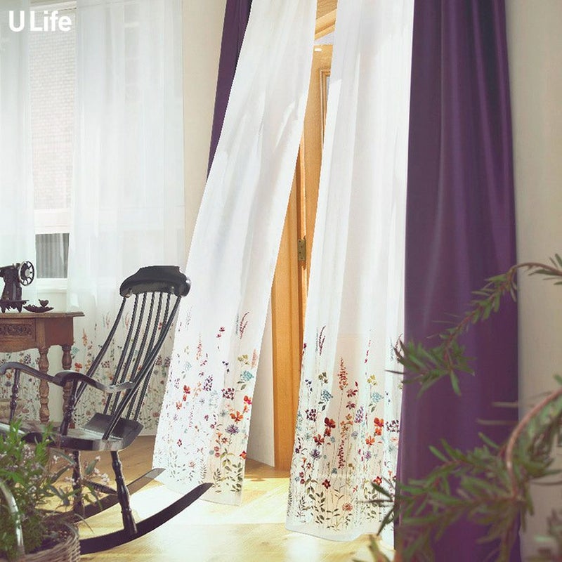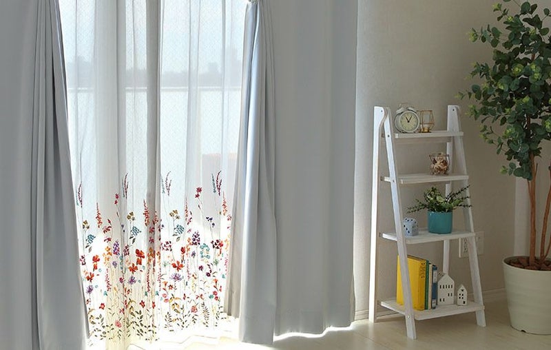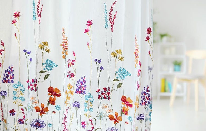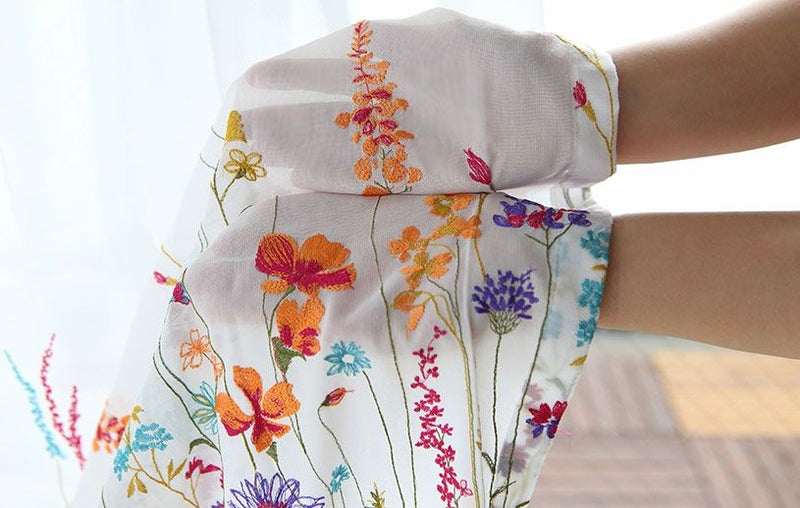 カラフルな刺繍の上品なレースカーテン