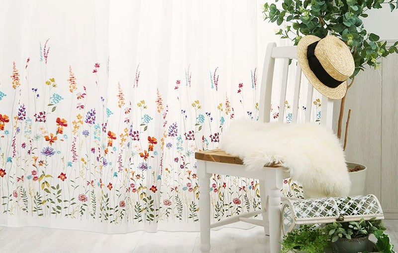 繊細な刺繍で描かれる、美しい花々。窓辺を華やかに彩り、お部屋に文字通り「花」を添えます。昨日とは違う、今日は何か素敵な物語がはじまる予感がする、そんな気持ちにさせるデザインを楽しみませんか。