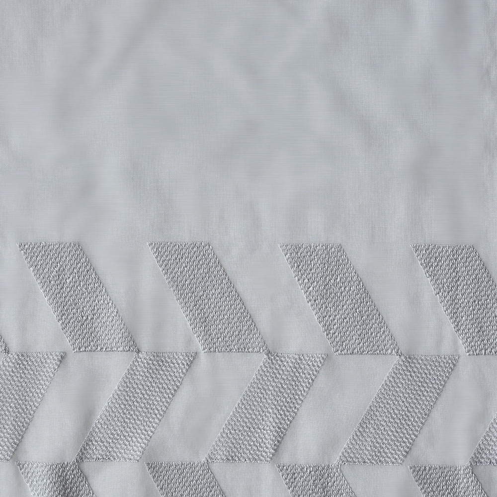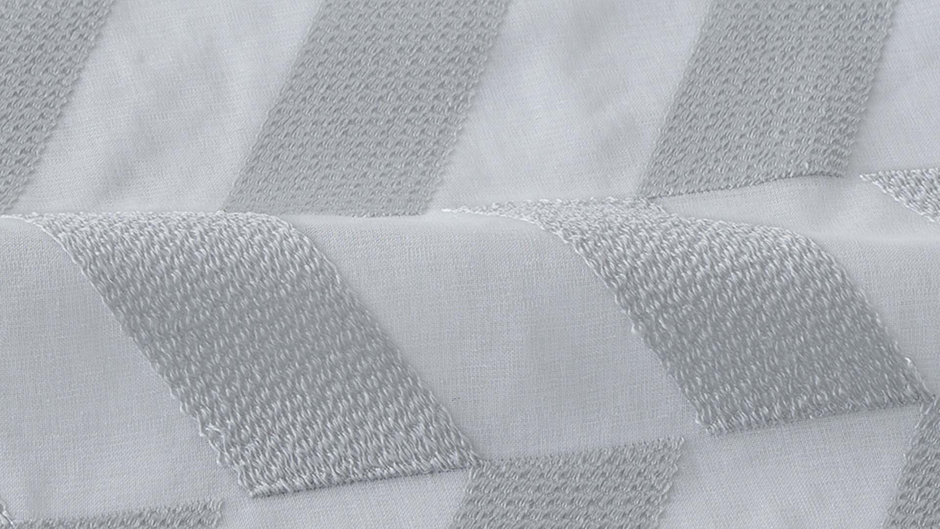ほんのりくすみ掛かったホワイトと、シルバーのような上品なグレー。この絶妙な色合いの刺繍が、洗練された空間に導いてくれます。よりクリーンな印象をお求めの方にはホワイト、スタイリッシュな印象をお求めの方にはグレーをおすすめいたします。