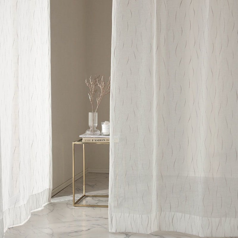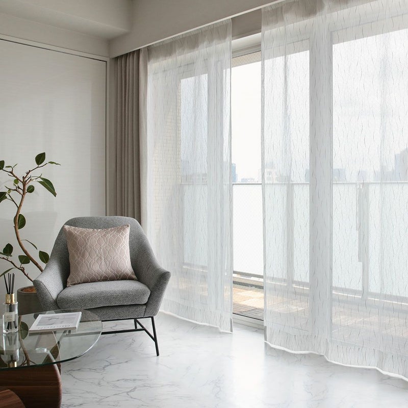 モダンでシャープな印象のデザインレースカーテンは、まるで海外のラグジュアリーホテルのような雰囲気を演出してくれます。窓から差し込む陽射しも毎日の楽しみに。
