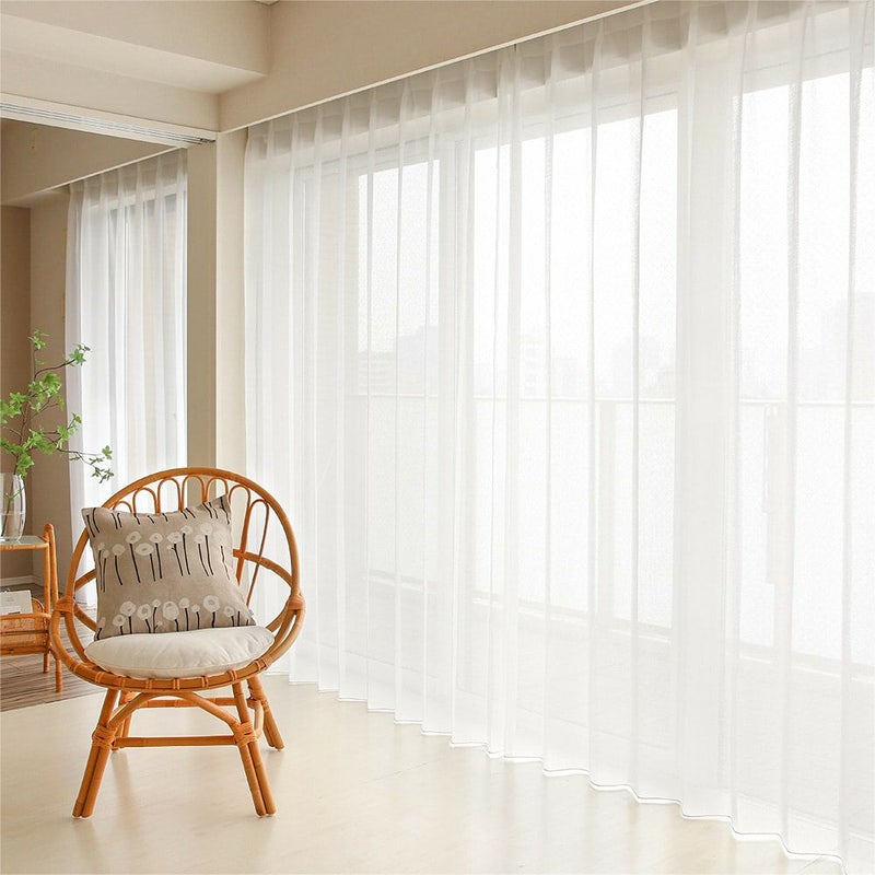 通常、横幅の大きなカーテンには生地の「継ぎ目」が入ってしまいます…。しかし、生地を横方向に使うシームレスカーテンなら、大きなサイズでも継ぎ目無しの美しい仕上がりに!どこまでも美しく広がるレースカーテンを、ぜひ大きな窓でお楽しみください。