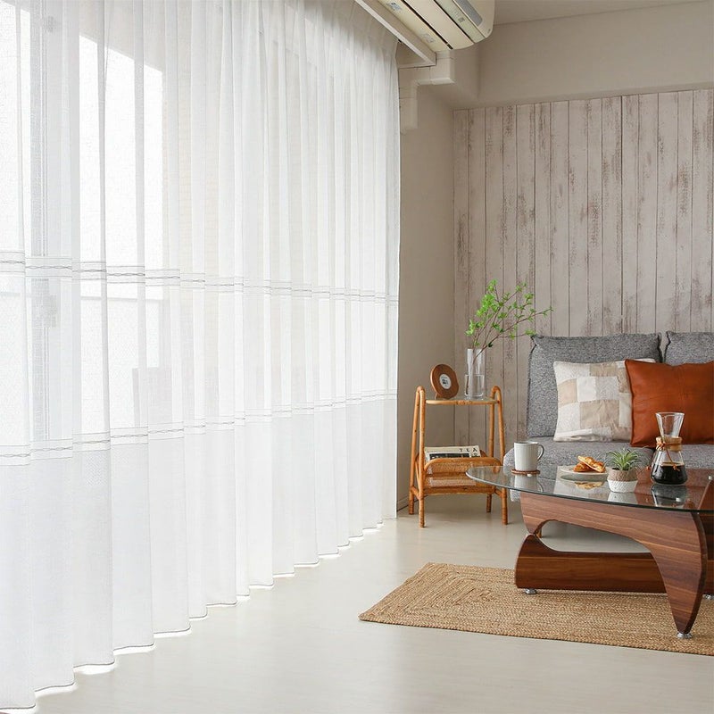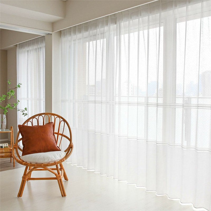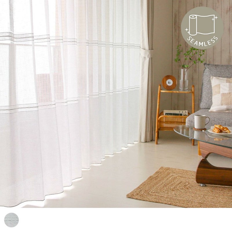 異なる質感の生地を組み合わせた、こなれ感漂うボイルレースカーテン。継ぎ目のないシームレスだから、異素材が織りなす繊細なデザインを、より美しく感じられます。