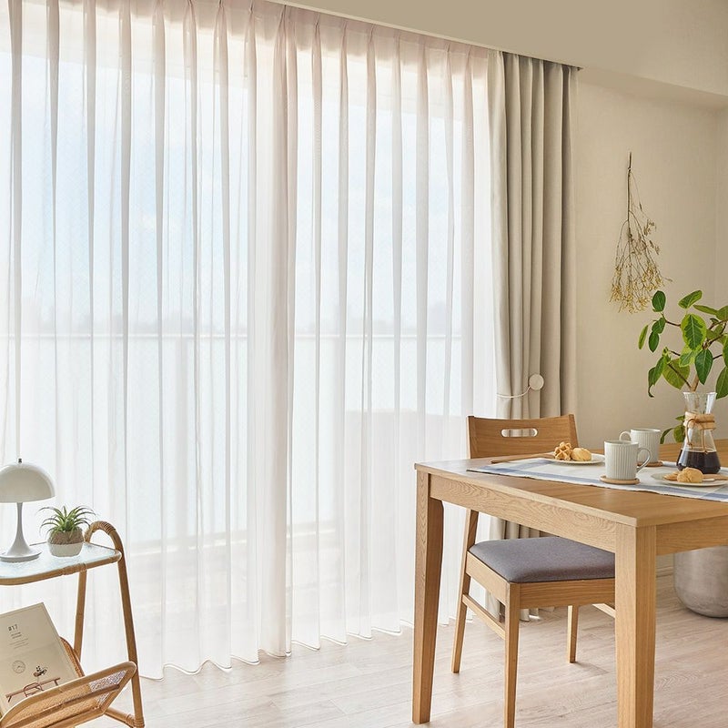 外からの熱を遮る遮熱効果と、せっかくの冷暖房の空気を逃がさない保温効果つき。1年中快適に暮らすために、窓辺でそっと力を貸してくれるレースカーテンです。