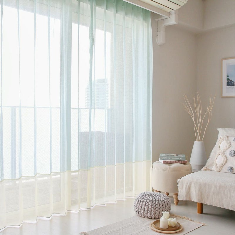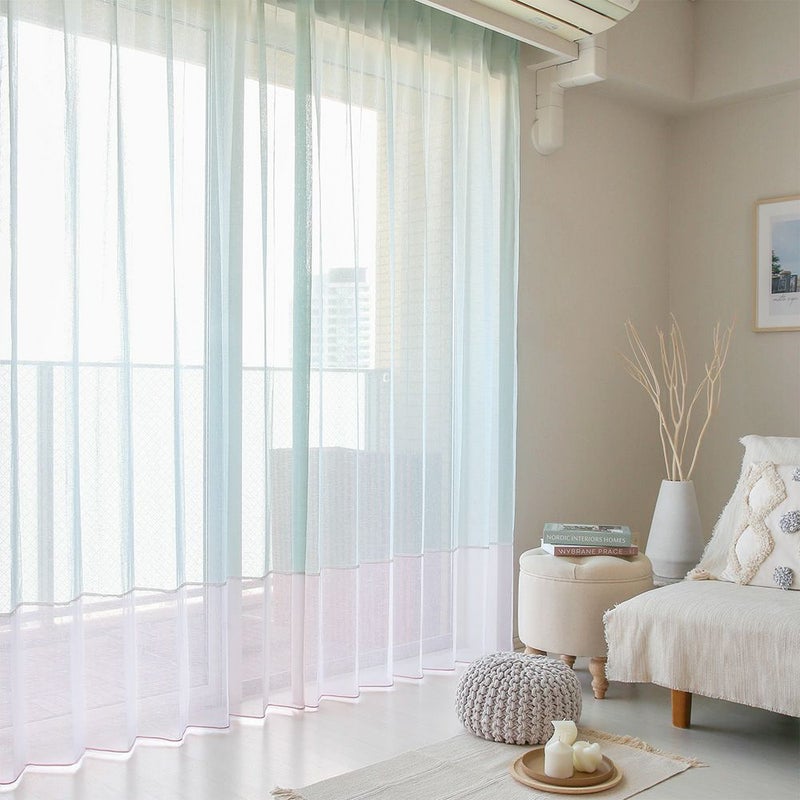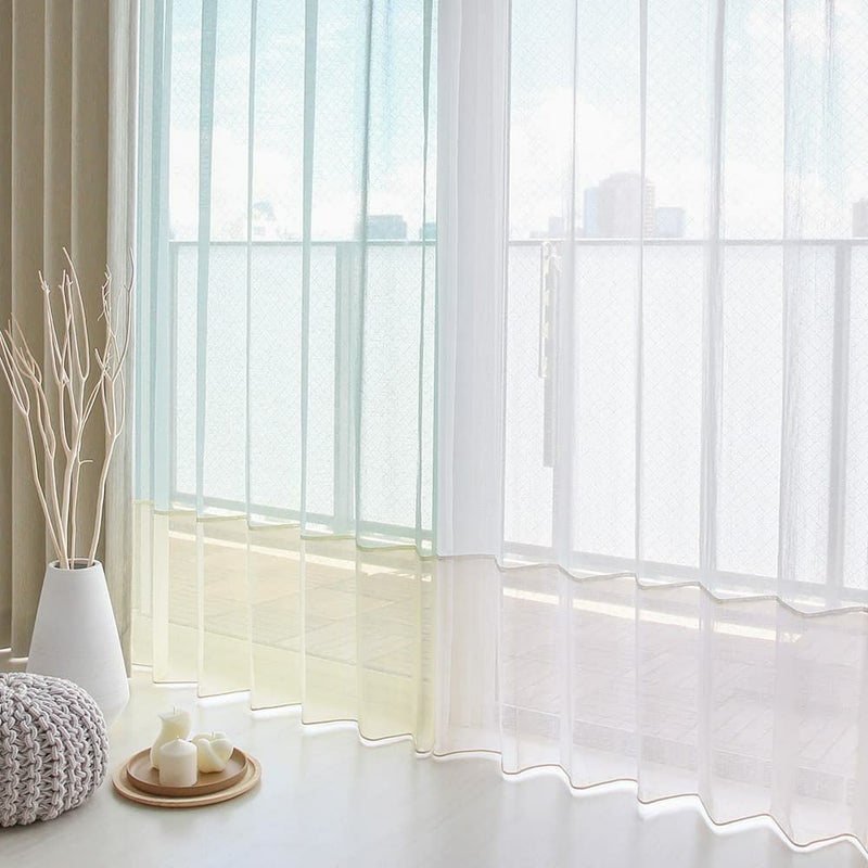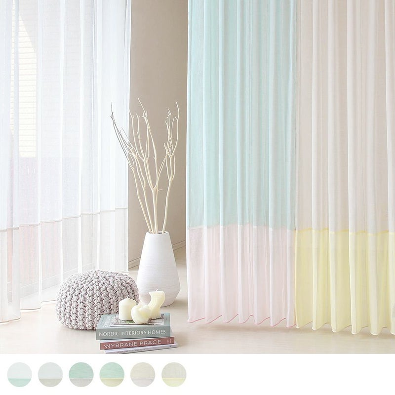 さらに、ざっくりとしたボイル生地なので、レースカーテンならではの透け感と柔らかさも感じられます。まだあまり見かけない、ボイルレースカーテンのジョイントスタイルを、ぜひお楽しみください! -