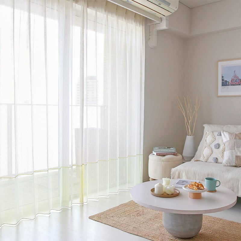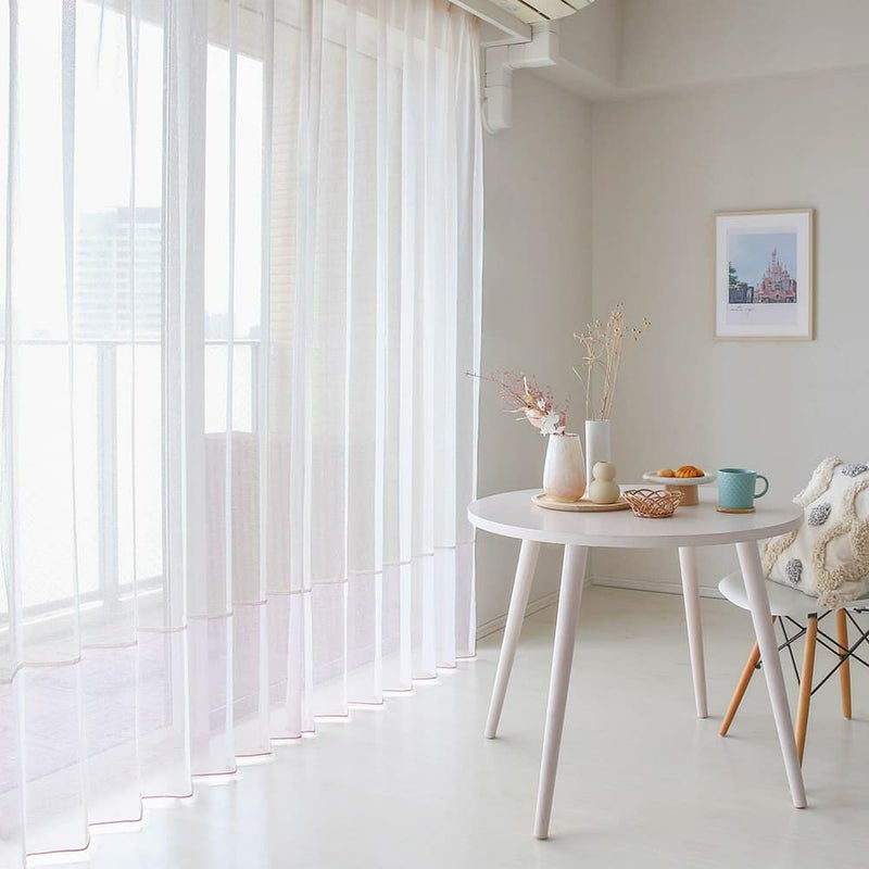 ペールトーンでまとめられた柔らかな空間。そこに、優しいアクセントになるジョイントカラーレースカーテンを合わせる。それだけで、トレンド感のある愛され部屋が叶います!