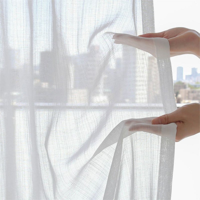 手触りは、リネンタッチの涼し気な風合い。意外と触れることの多いレースカーテンだから、手触りにもこだわりました。