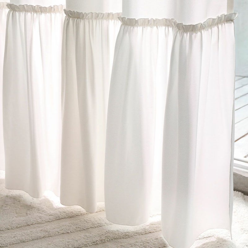 フリルのジョイント部分に施された、さりげないフリルも可愛い!窓辺のほどよいアクセントになって、お洒落な空間を演出してくれます。