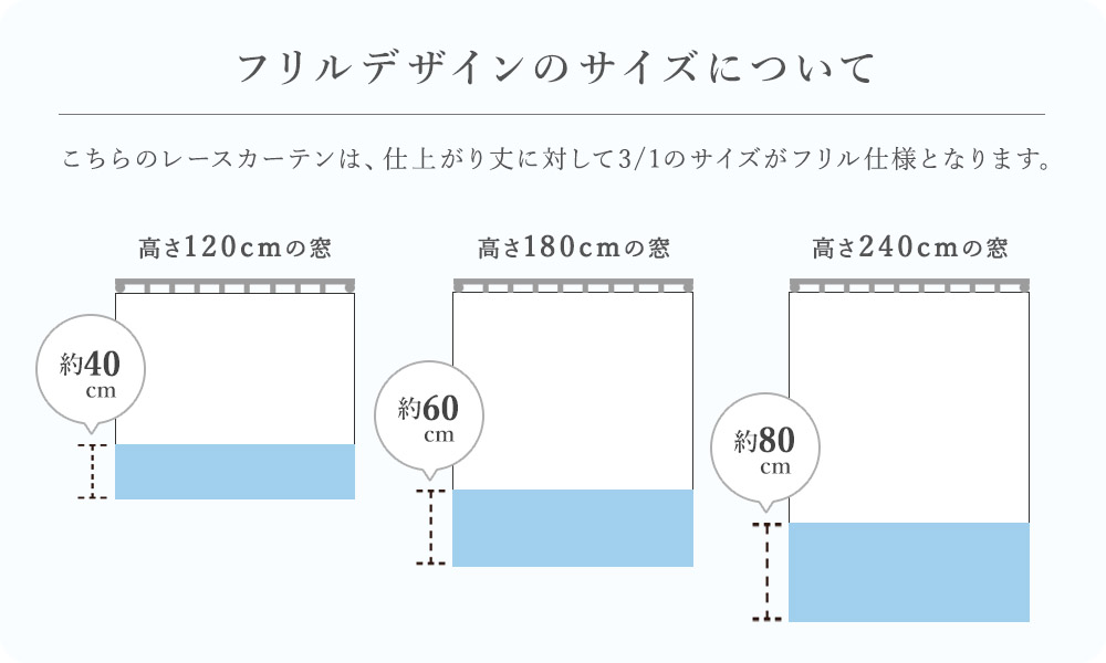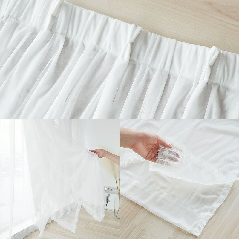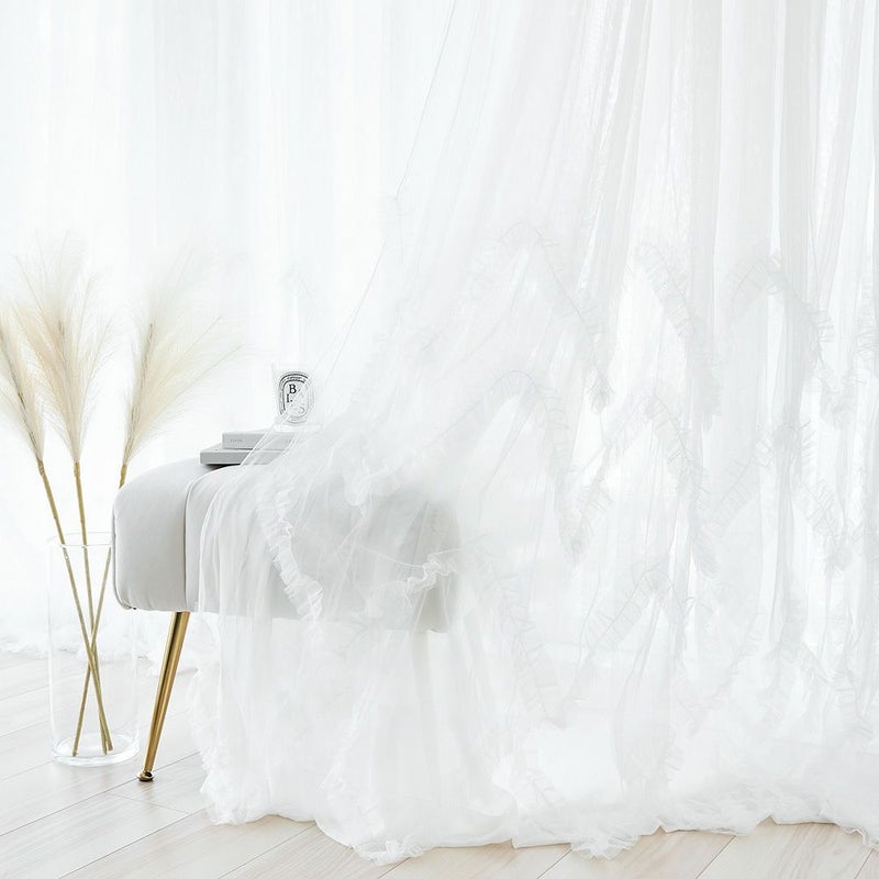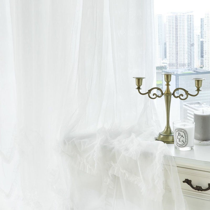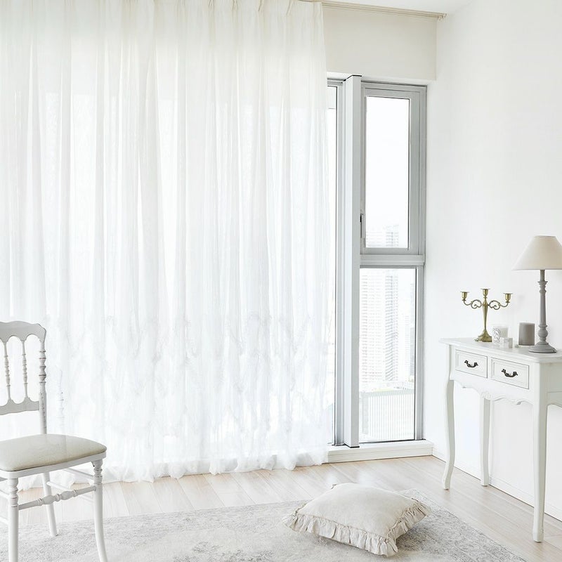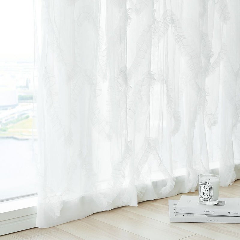 きめの細かい繊細なチュール生地が、フェミニンなフリルを甘すぎない上品な印象へと仕上げます。このチュール生地の繊細さが、ボリューミーながら軽やかで可憐な窓辺を演出してくれます。