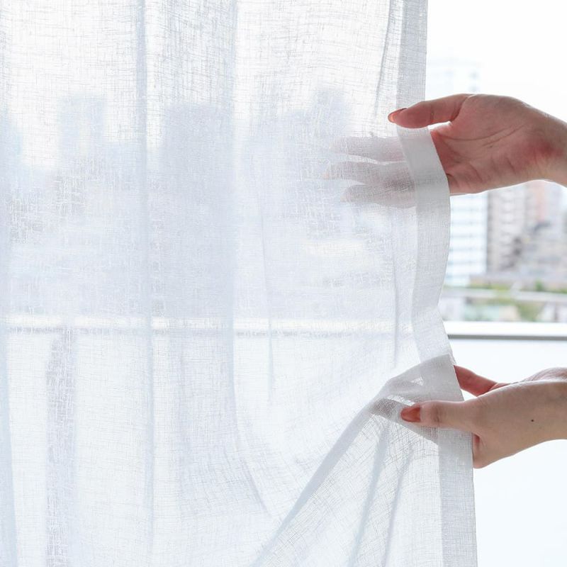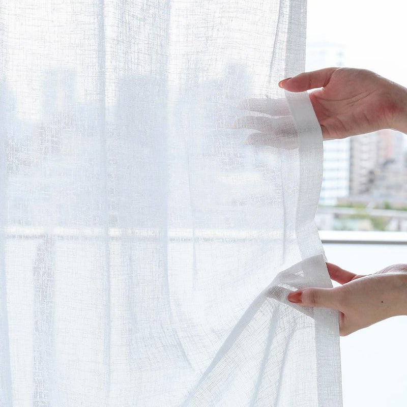 上質なガーゼのようなざっくり素材が、表情豊かな透け感を叶えます。お部屋の中にいても、その時々の天気を存分に楽しめるボイルレースカーテンです。