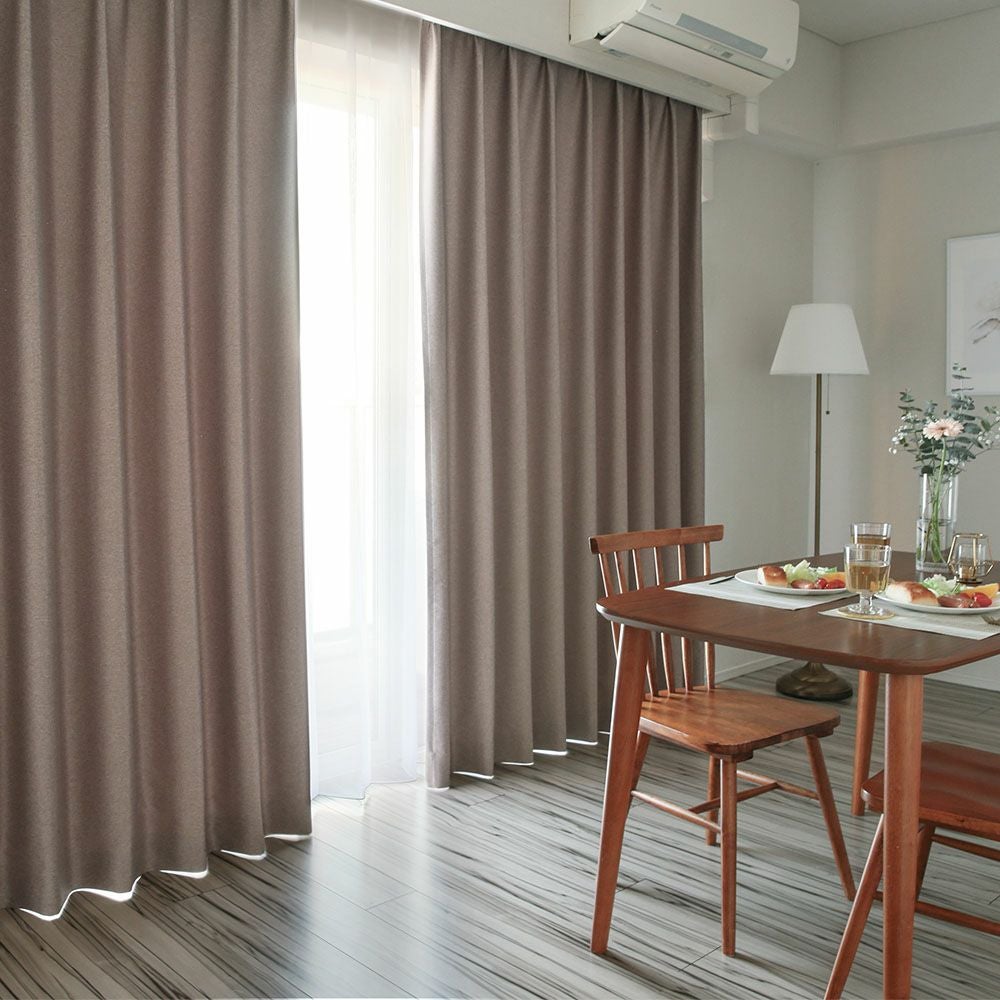 一方シームレスカーテンは、巾の広い生地を横方向に使用することで、巾継ぎをせずとも幅の広いカーテンを縫製することが可能です。巾継ぎをしてカーテンをお仕立てする場合、巾継ぎ部分にもミシンをかけるためピンホール(針穴)が発生します。このピンホールが、特に遮光生地の場合には光漏れに繋がってしまう場合があります。(生地の特性により光漏れの具合は異なります)巾継ぎ無しのシームレスであれば、そもそも継ぎ目がないのでカーテンの途中でピンホールが発生してしまうことなく、より遮光カーテンの特性を活かすことが可能です。窓の幅が大きなリビングなどにおすすめ。