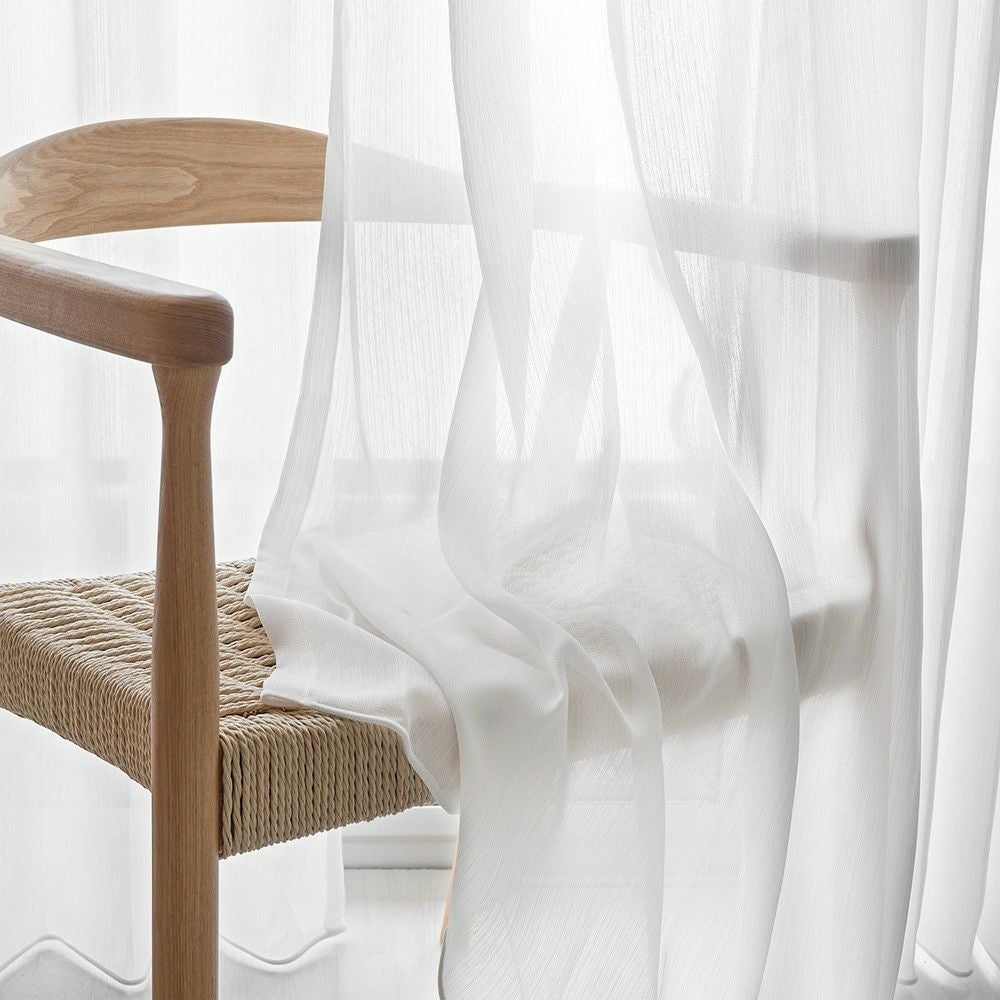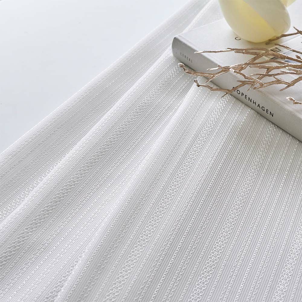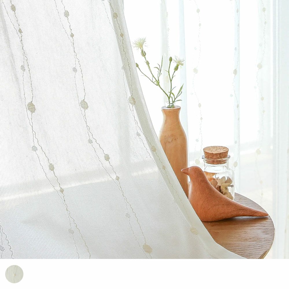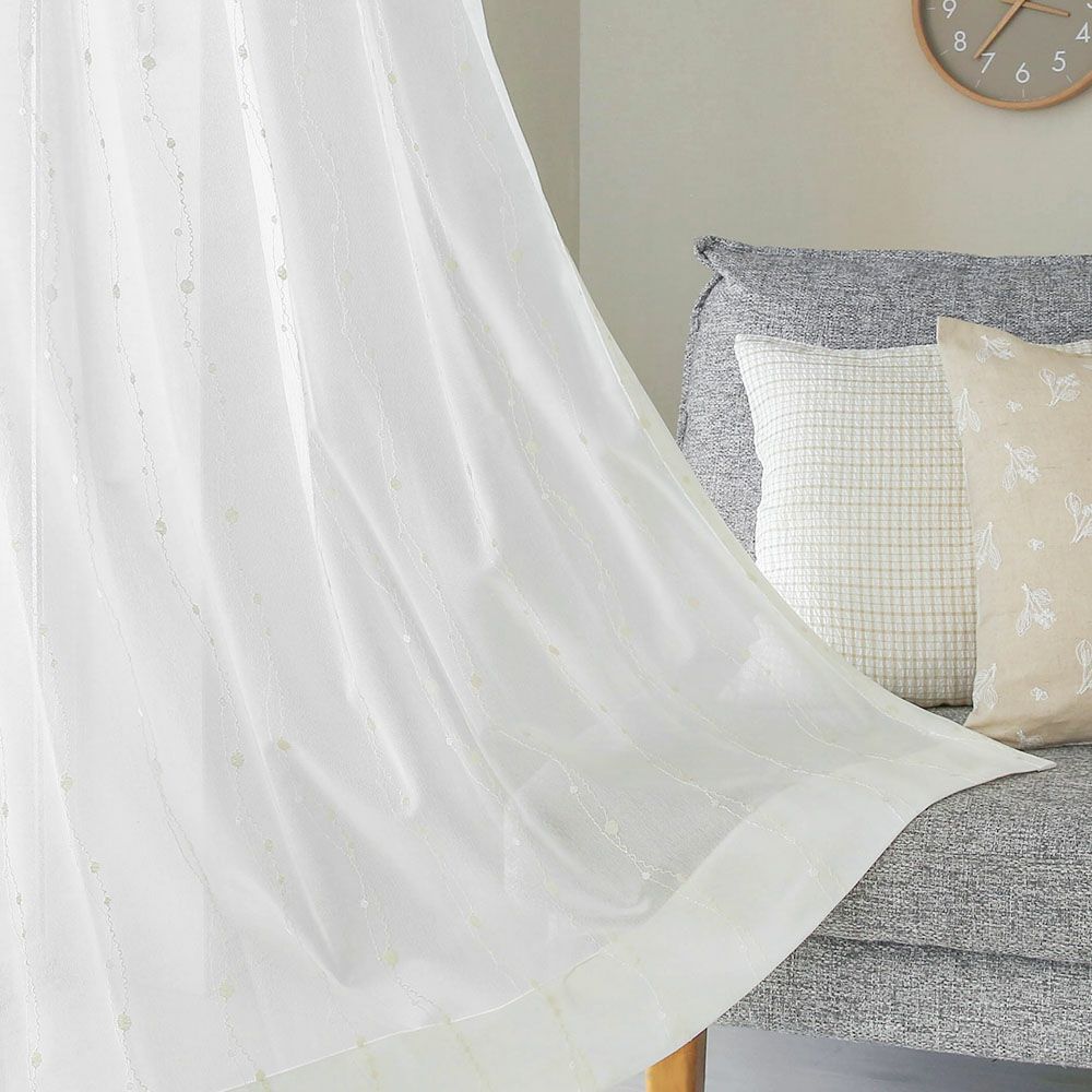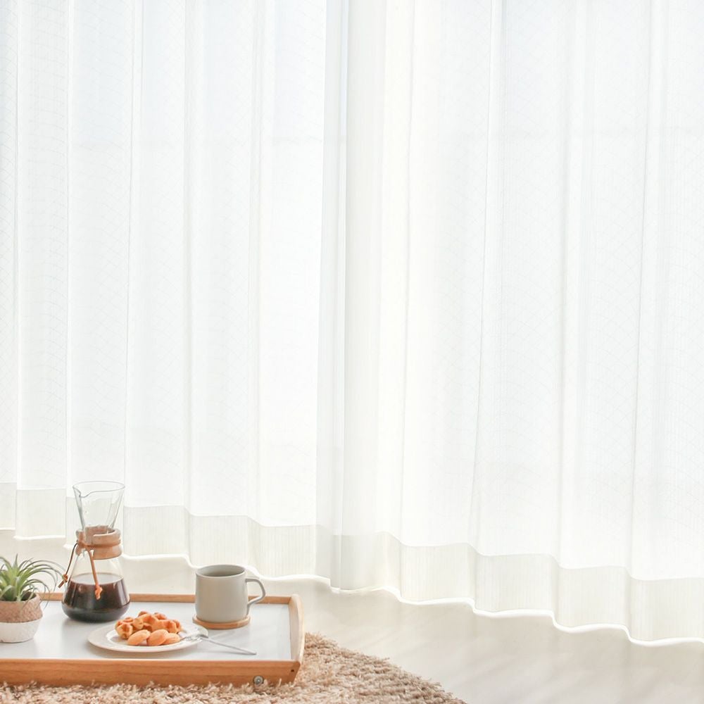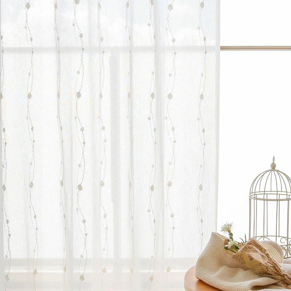 ブライト糸を編み込むことで昼間のプライバシーを守ってくれる、外から透けにくいレースカーテンです。
