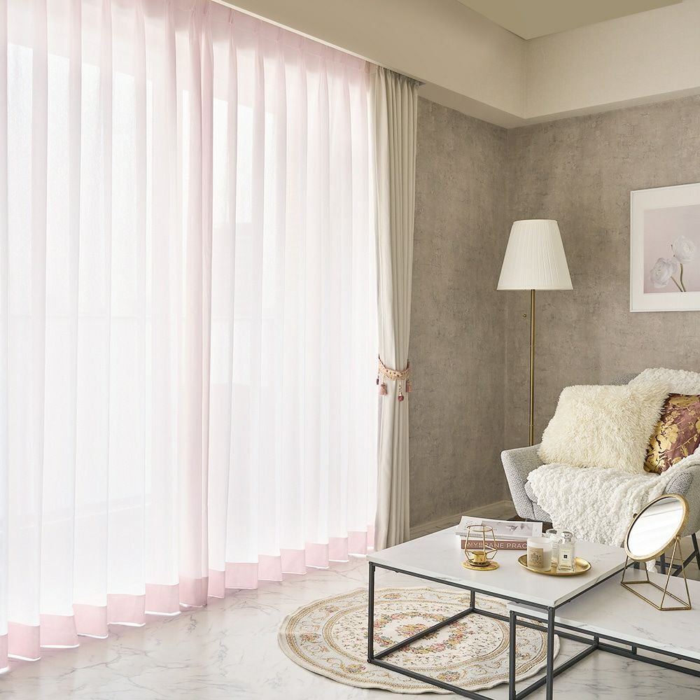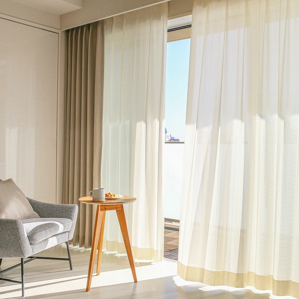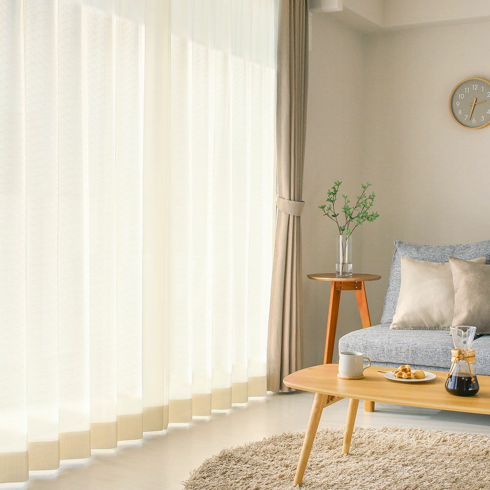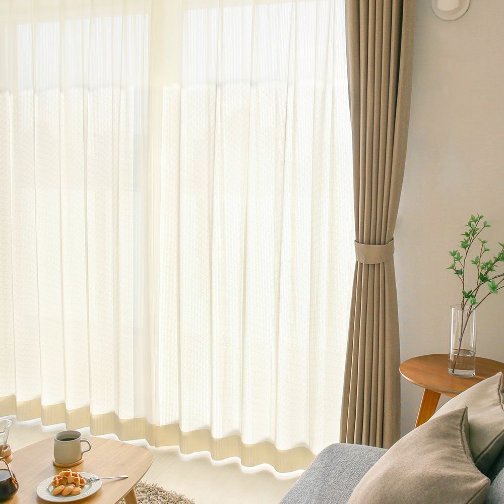レースカーテンの長さは、ドレープカーテンよりも1cm短めにご注文いただくと、ドレープの裾からレースがちらちらと見えてしまうことがなく、美しい仕上がりになります。