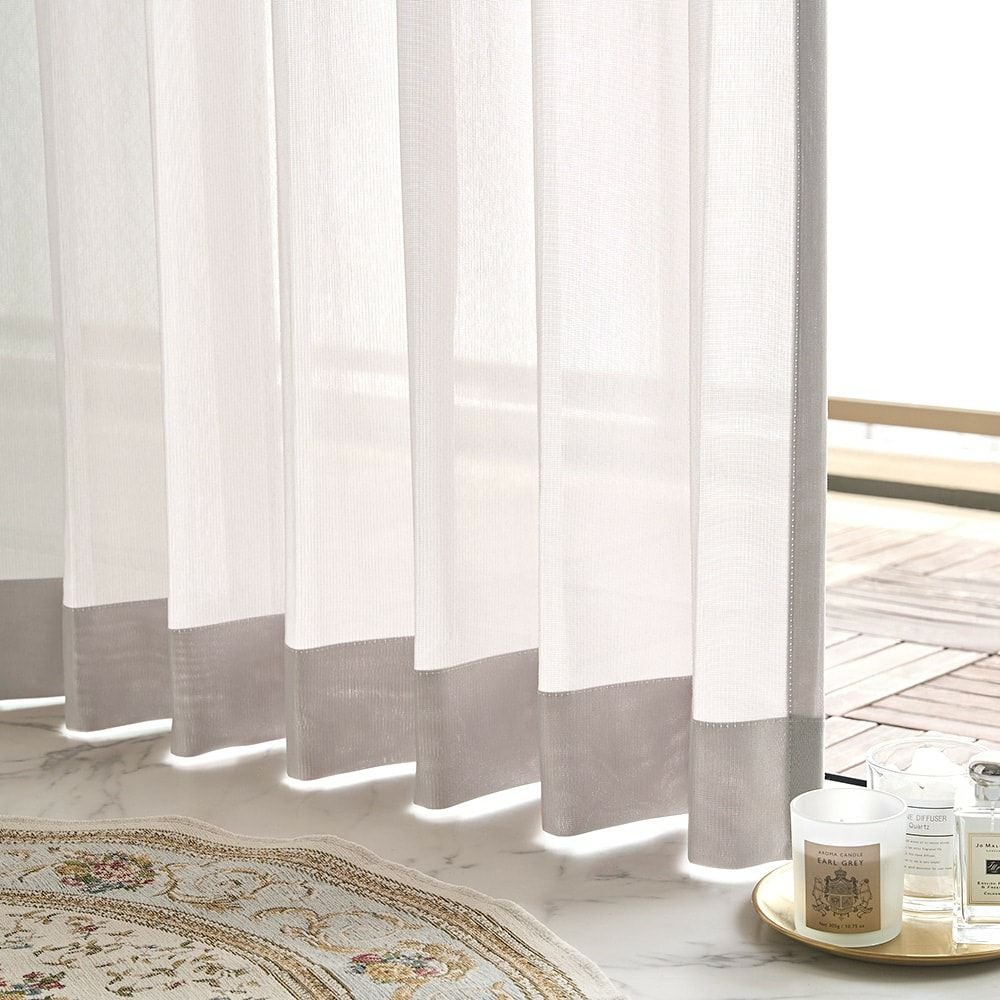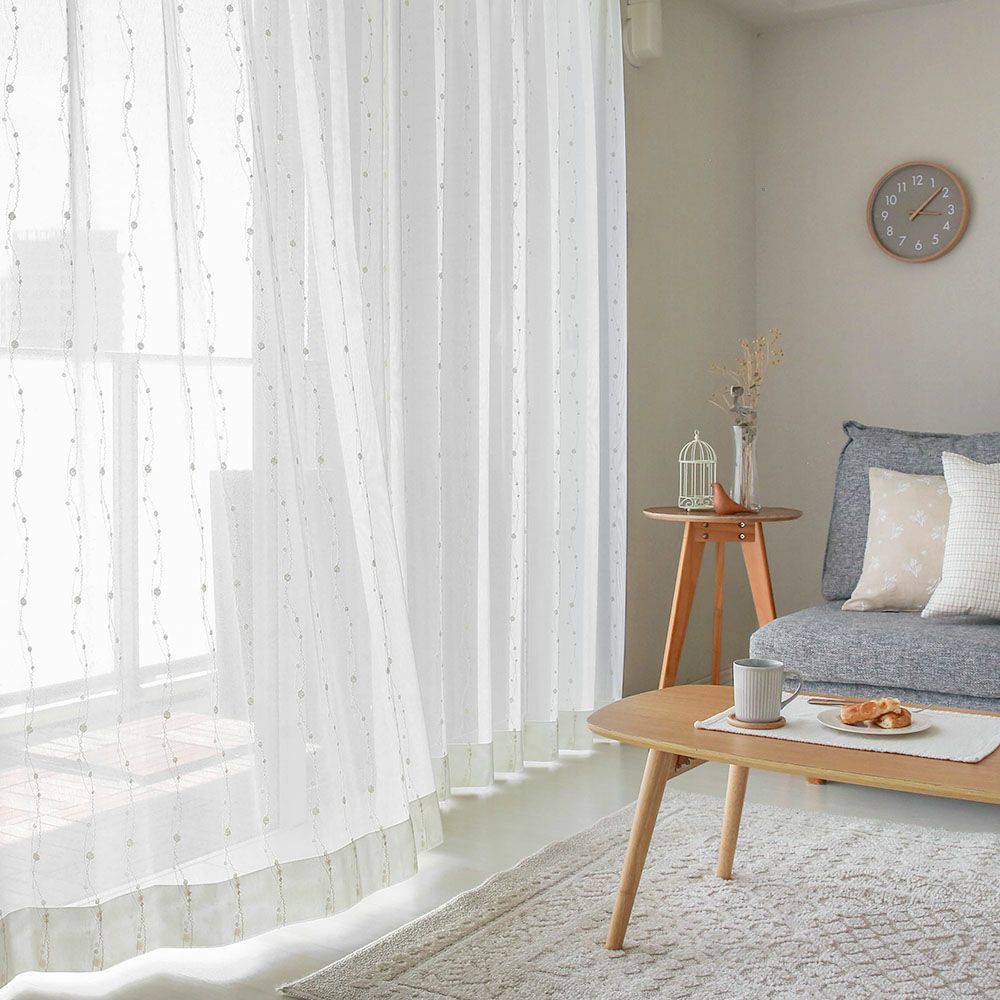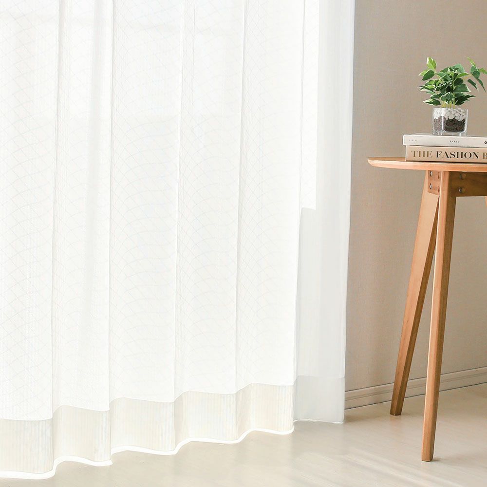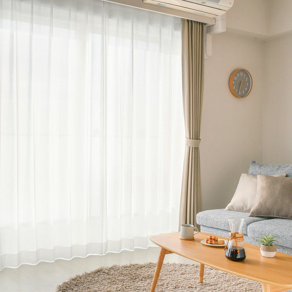 レースカーテンの長さは、ドレープカーテンよりも1cm短めにご注文いただくと、ドレープの裾からレースがちらちらと見えてしまうことがなく、美しい仕上がりになります。