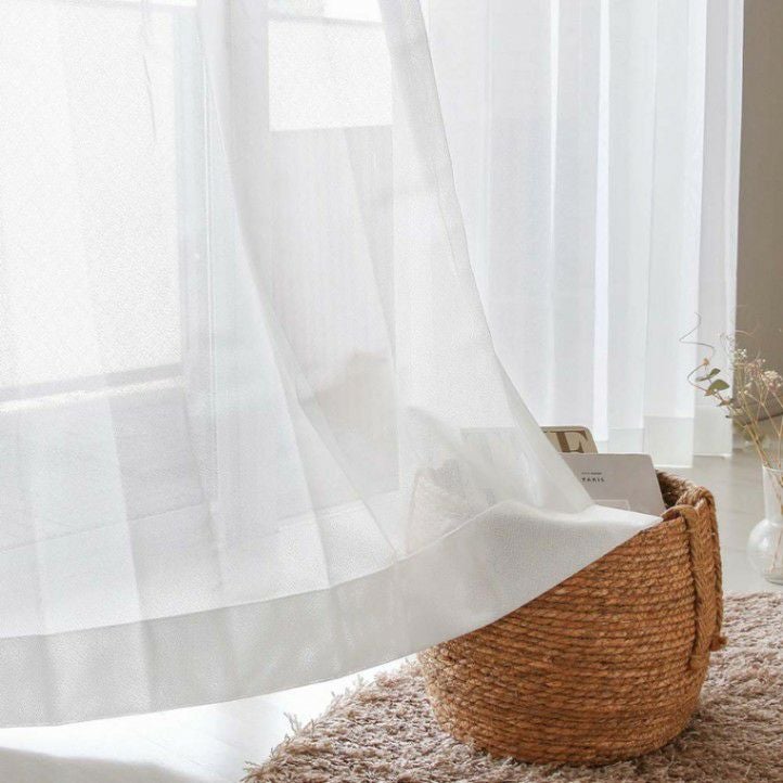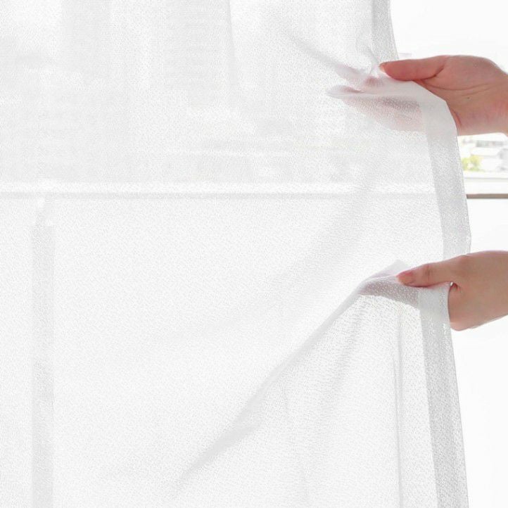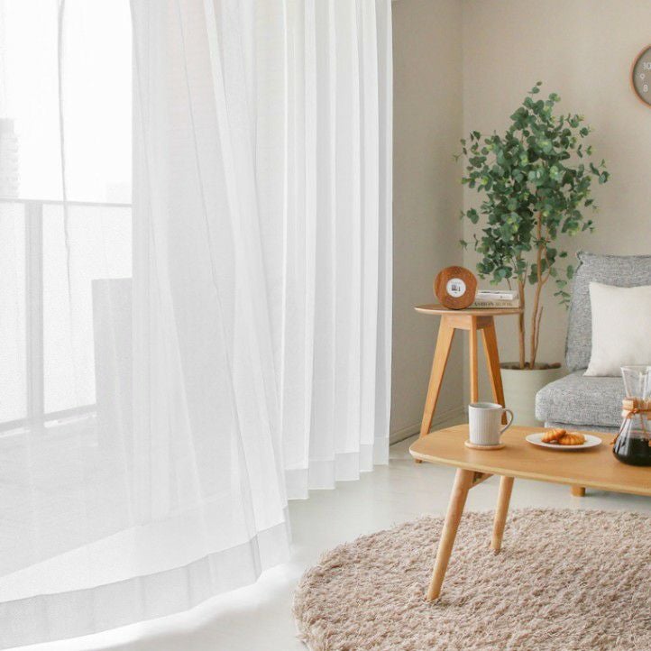 とってもシンプルでナチュラルな無地調の生地。光にあたるとやや艶を感じるところも◎どんな空間にも合わせやすく、飽きの来ないレースカーテンです。