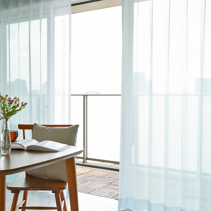 カーテンを掛けた瞬間、お部屋にフレッシュな空気が満ちる。そんな爽やかなブルーのレースカーテンは、ナチュラルなインテリアにこそ良く合います。