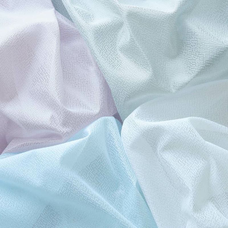 カラー:左からホワイト、ブルー、ピンク、グレーシンプルなデザインと、可愛いニュアンスカラーの組み合わせが“大人可愛い”を叶えます。ミラー効果でお昼時のプライバシーを守ってくれる、女性におすすめのレースカーテン。