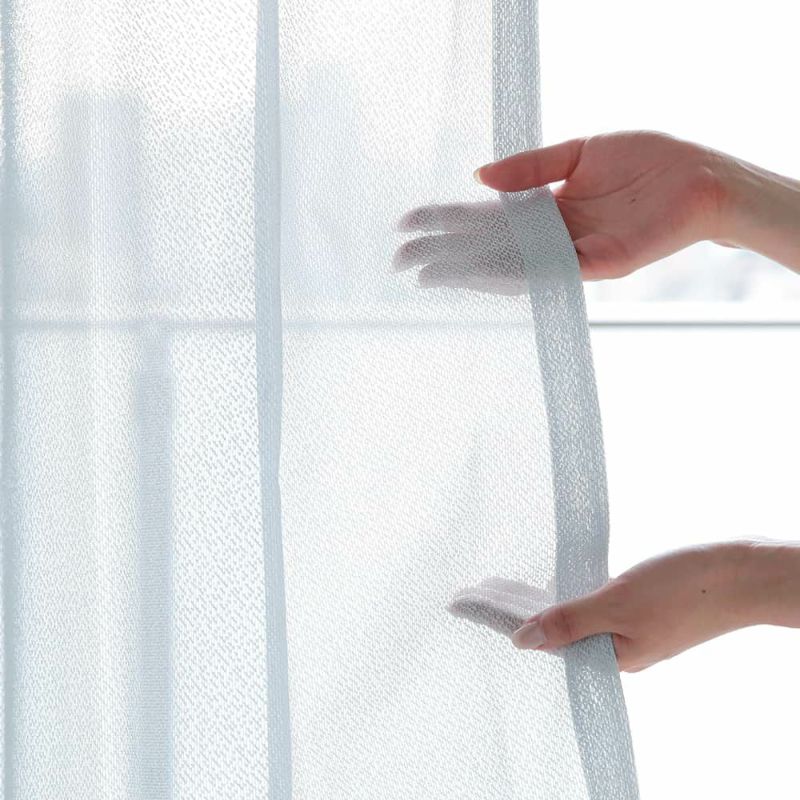 軽やかでシャリ感のある生地は、涼し気な雰囲気を感じさせてくれます。毎朝触れるカーテンだから、ストレスフリーな生地感にこだわりました。