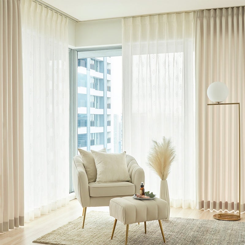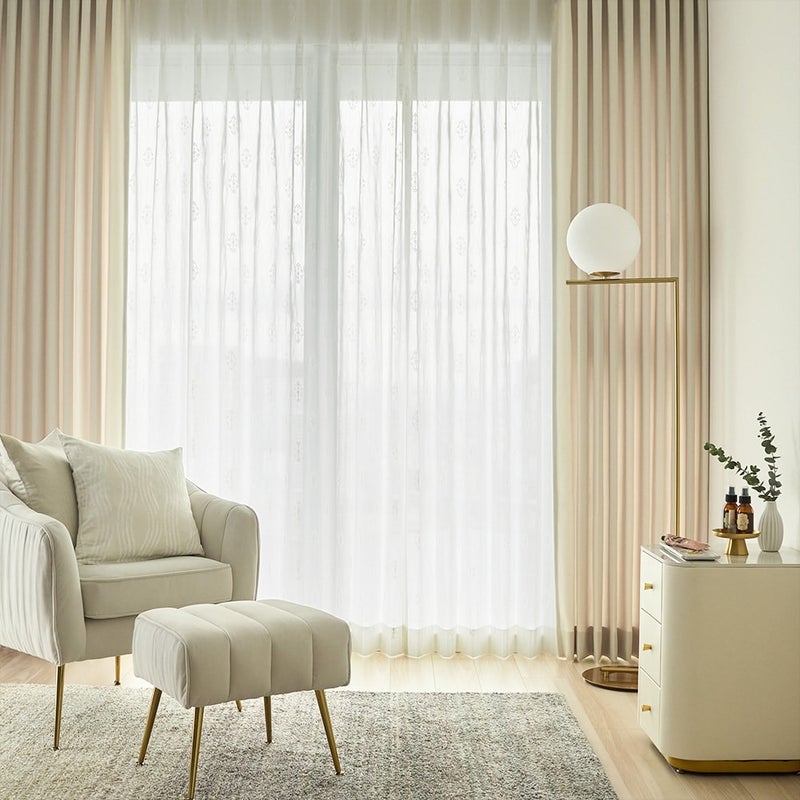 やわらかな光と透け感を楽しみつつ、紫外線はしっかり軽減。日差しによるダメージを穏やかに抑え、床や家具を美しく守ります。空間の印象を損なわず、日常にそっと安心を添えるUVカット機能付きです。