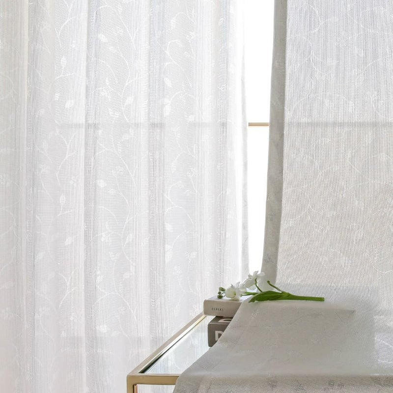 優れた遮熱率と、豊かな機能性。窓辺のお悩みを解決してくれるレースカーテンは、アルミのきらめきをまとったエコファインで決まり! さり気ないリーフモチーフで、しっかりおしゃれもキープした多機能レースのオーダーカーテンで、快適なお部屋づくりをしてみませんか?