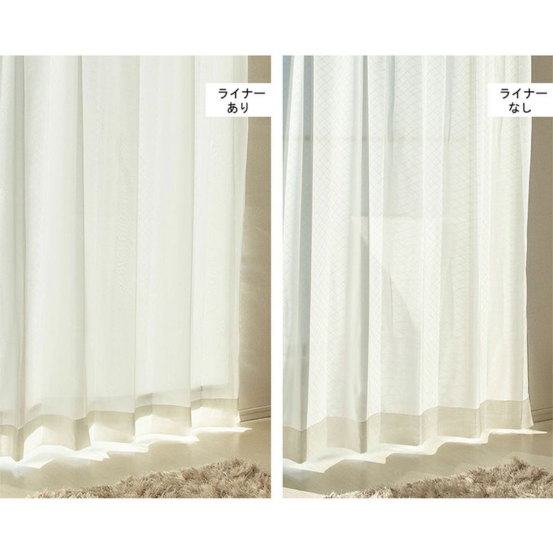 【撮影コーディネート】ドレープカーテン<エブリデイ~グレーベージュ~>一般的な遮光ライナーとエコファイン裏地ライナーを比較してみると、その差は一目瞭然。採光性に優れているから、風合いを失いたくないレースカーテンや、天然素材のような遮光したくないカーテンにもご利用いただけます。