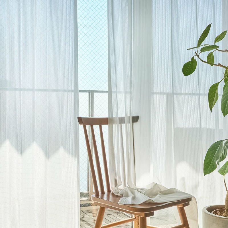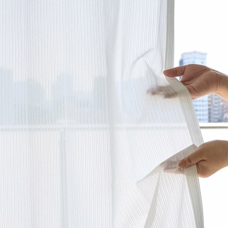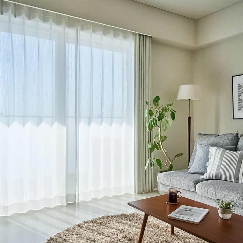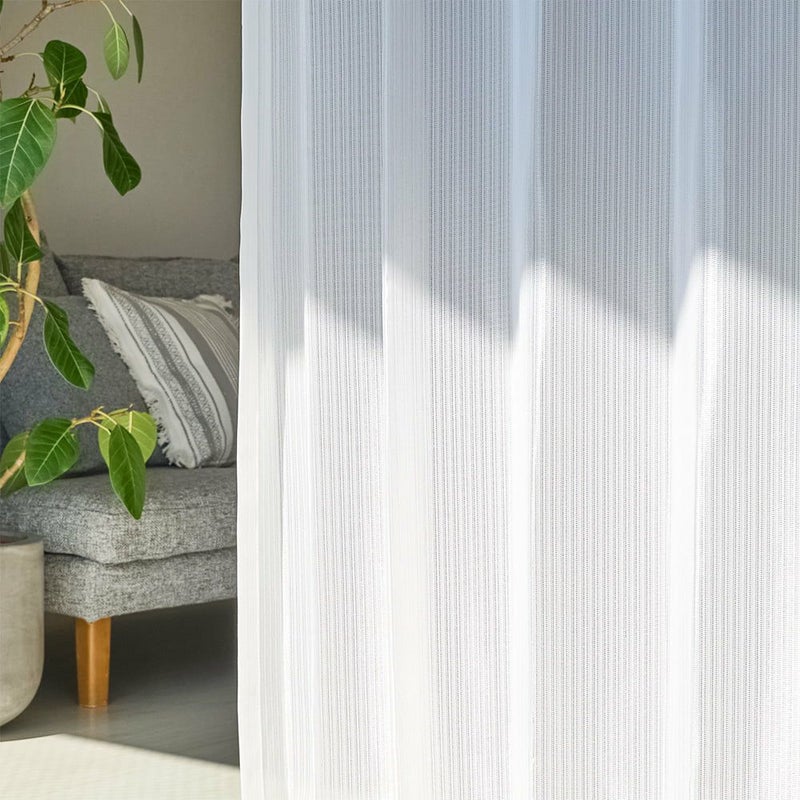 どんなドレープカーテンにも、どんなインテリアにも、マッチするシンプルなストライプデザイン。やや黄味がかかったナチュラルなホワイトが、ふわっと優しい印象をプラスしてくれます。