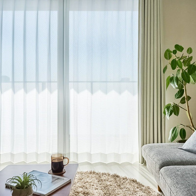 だからこそ外からの視線はある程度ブロックしつつ、室内からは外の気配が分かるミラーレースカーテンがおすすめ。「見える安心」は保ちつつ、昼間のプライバシーを守ってくれます。 -