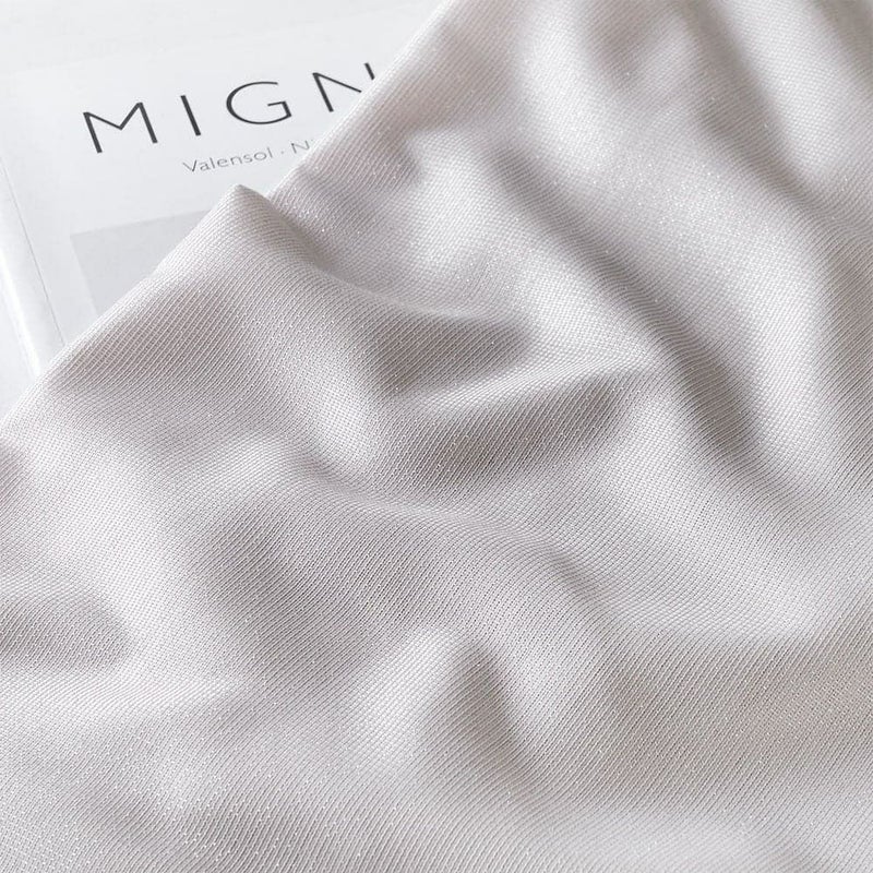 とっても繊細なラメだから、一見シンプルなデザインのレースカーテン。だけれども、光にあたるとまるで繊細に輝く水面のように煌めいて私たちを魅了してくれます。