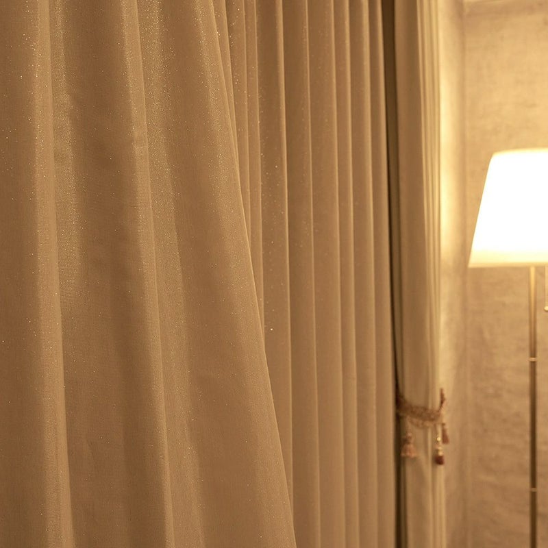 そっと指先で触れると繊細なラメが感じられて、レースカーテンの手触りまで愛おしくなる。毎日の開け閉めも、心が弾む瞬間に♪
