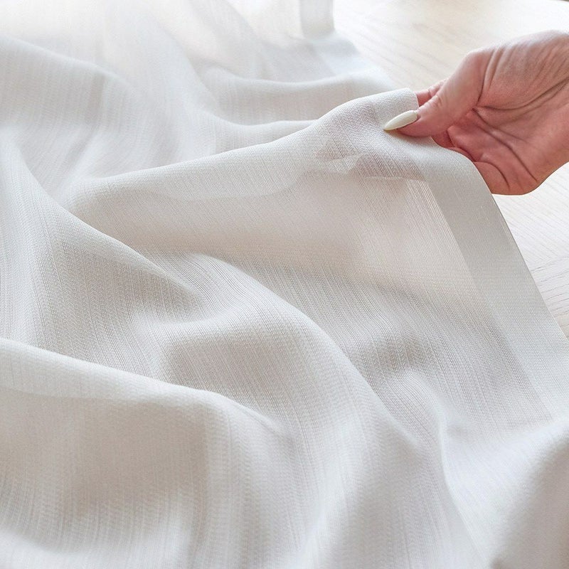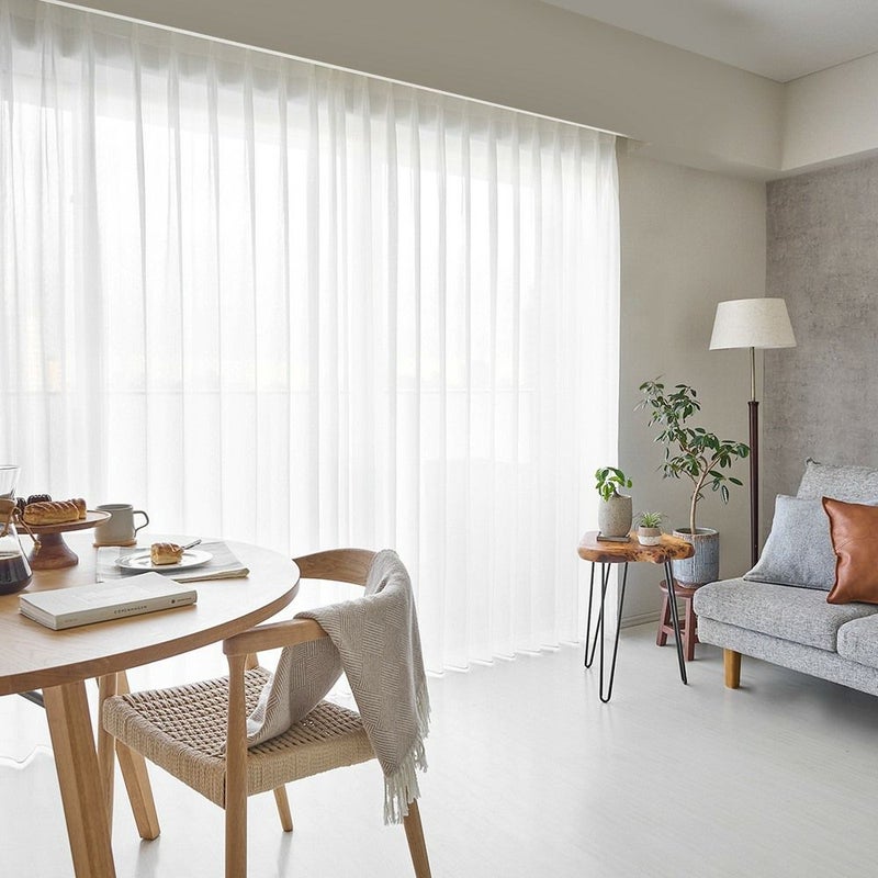 ただシンプルなだけでなく、こだわり抜かれた上質さを感じさせるレースカーテン。生地の柔らかさや糸使いからも、その品質の良さを感じられます。
