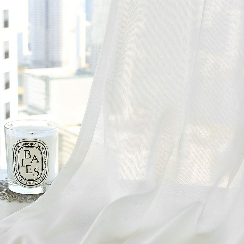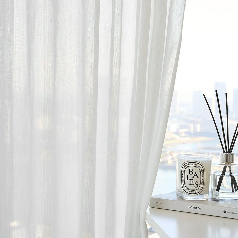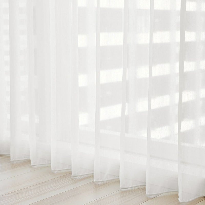 きめの細かいプレーンな生地。うっすらと仕込まれた縦のラインが、お部屋をすっきりした印象へと導きます。どんな空間にも、どんな家具にもよく馴染む、使い勝手抜群のレースカーテンです。