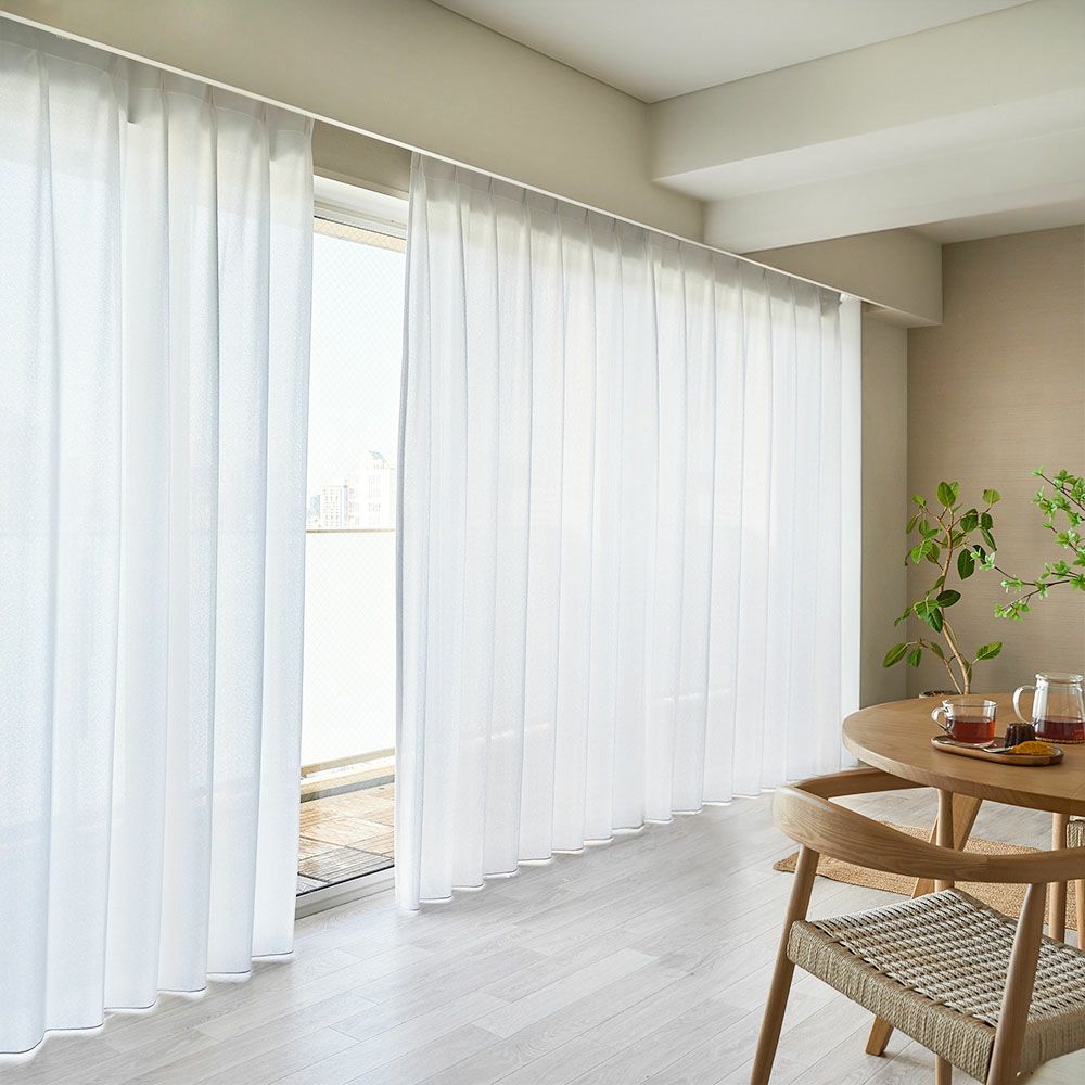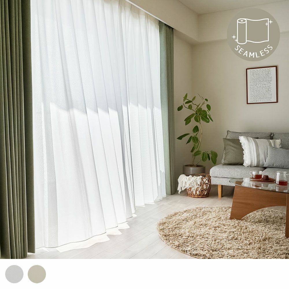 継ぎ目のないシームレスカーテンに、プライバシーを守る遮像レースカーテンが仲間入り!大きな窓でもプライバシーをしっかりと守ります。