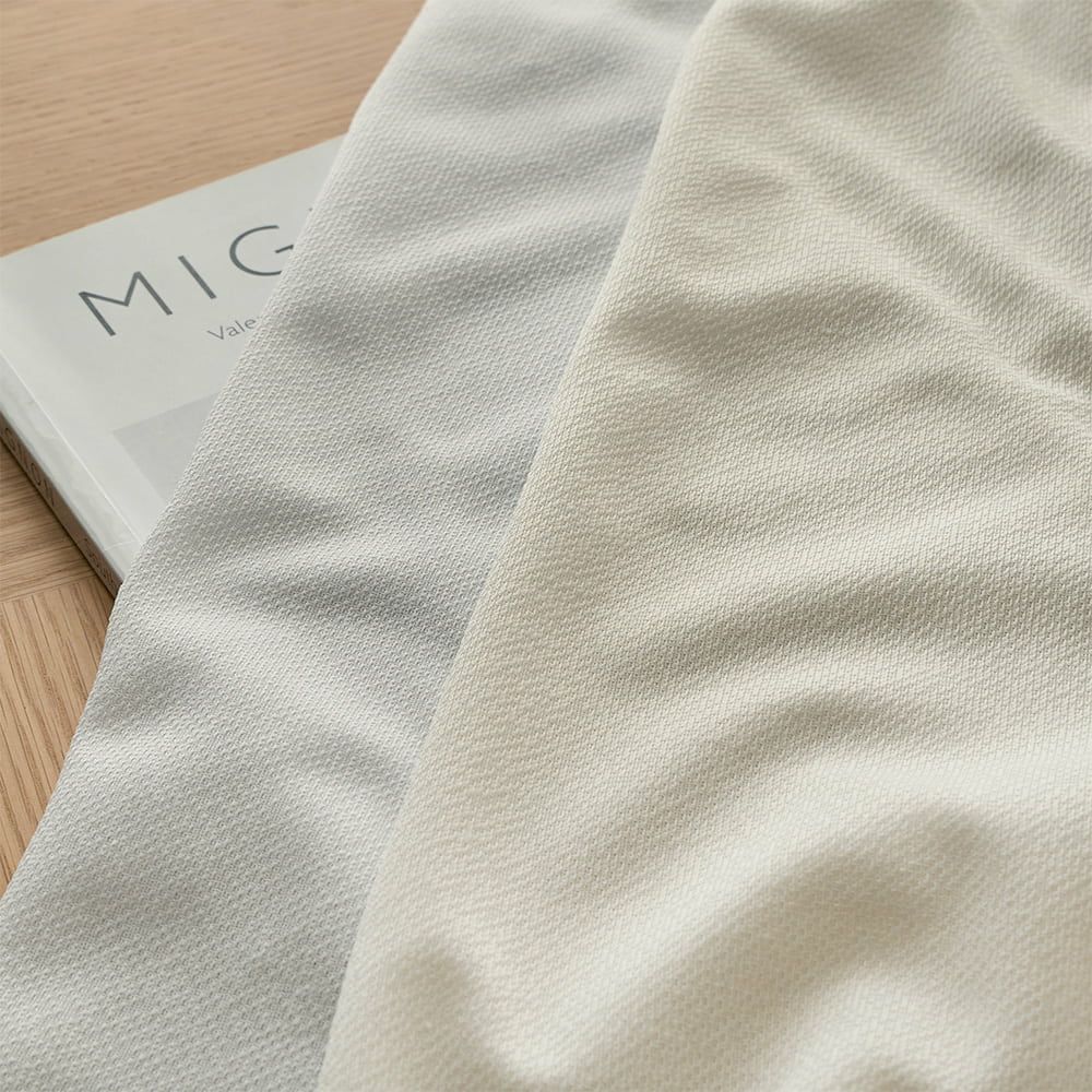 やわらかく光を通してくれる軽やかな生地感でありながら、ほどよく厚みも感じるテキスタイル。カーテンは買い替える機会も少ないからこそ、長く使えそうな手触りも嬉しいポイントです。