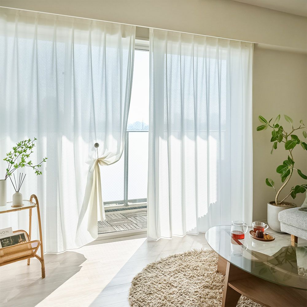 外からの熱を遮ってくれる遮熱効果と、せっかくつけた冷暖房の空気を逃がさない保温効果つき。1年中快適に暮らすために、窓辺でそっと力を貸してくれるレースカーテンです。