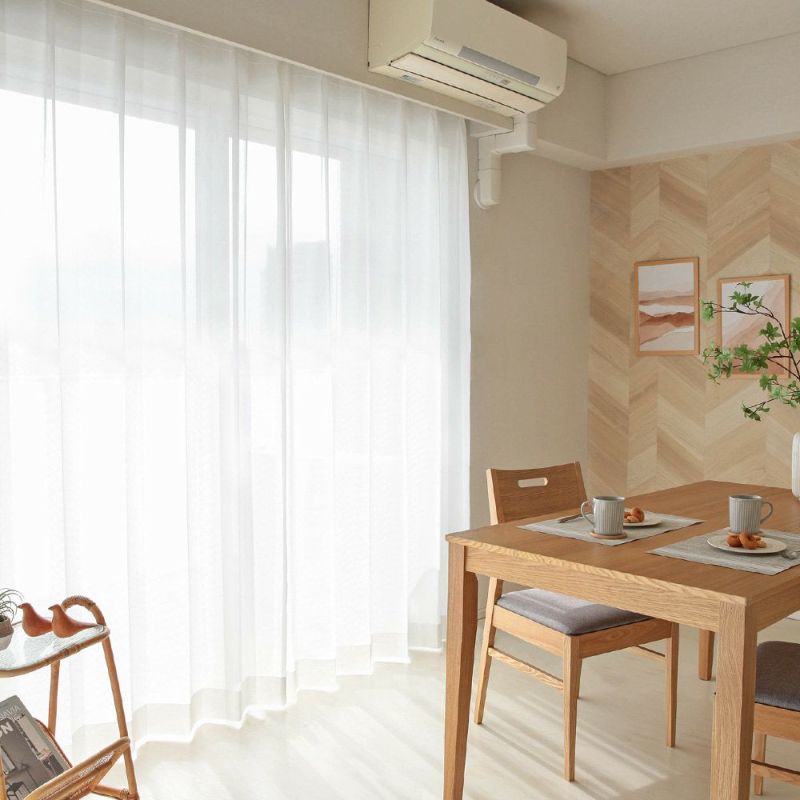 外からの熱を遮る遮熱効果と、せっかくの冷暖房の空気を逃がさない保温効果つき。1年中快適に暮らすために、窓辺でそっと力を貸してくれるレースカーテンです。
