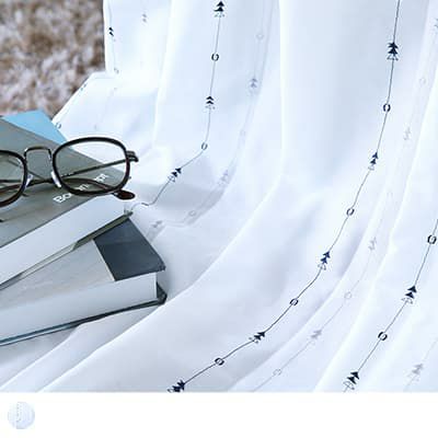 刺繍の製法上、カットした糸が数ミリ程度残る場合があります。また刺繍の寸法は商品によって変わる場合がありますが、刺繍カーテンの特性としてお楽しみください。