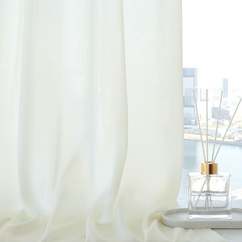 一度触れたら虜になってしまう、まるでマシュマロのような極上の手触り。潤いやとろみを感じるレースカーテンで、毎日の開け閉めさえ特別な瞬間に。