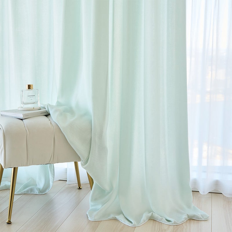 とろけるように柔らかい生地だから叶う、とろんとした落ち感のあるシルエット。天井から床面まで、たっぷりと贅沢にカーテンをかけるブレイクスタイルなら、縦ラインが強調され窓辺を高く見せてくれます。まるで、優雅なドレスを纏ったような窓辺に。