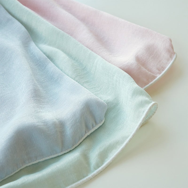 ピンク、ミント、ブルー。女性らしいニュアンスカラーの3色は、光と溶け合うことで完成します。光を通した時の色合いを想定し作られたニュアンスカラーを、ぜひご自宅の窓辺でお楽しみください。