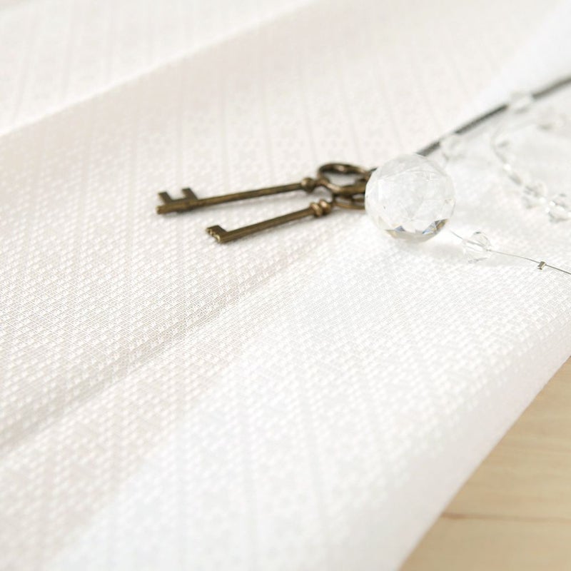 ぱっと見ると無地のようでありながら、よ~く見ると繊細なダイヤ柄がデザインされている、こだわりが光るレースカーテンです。
