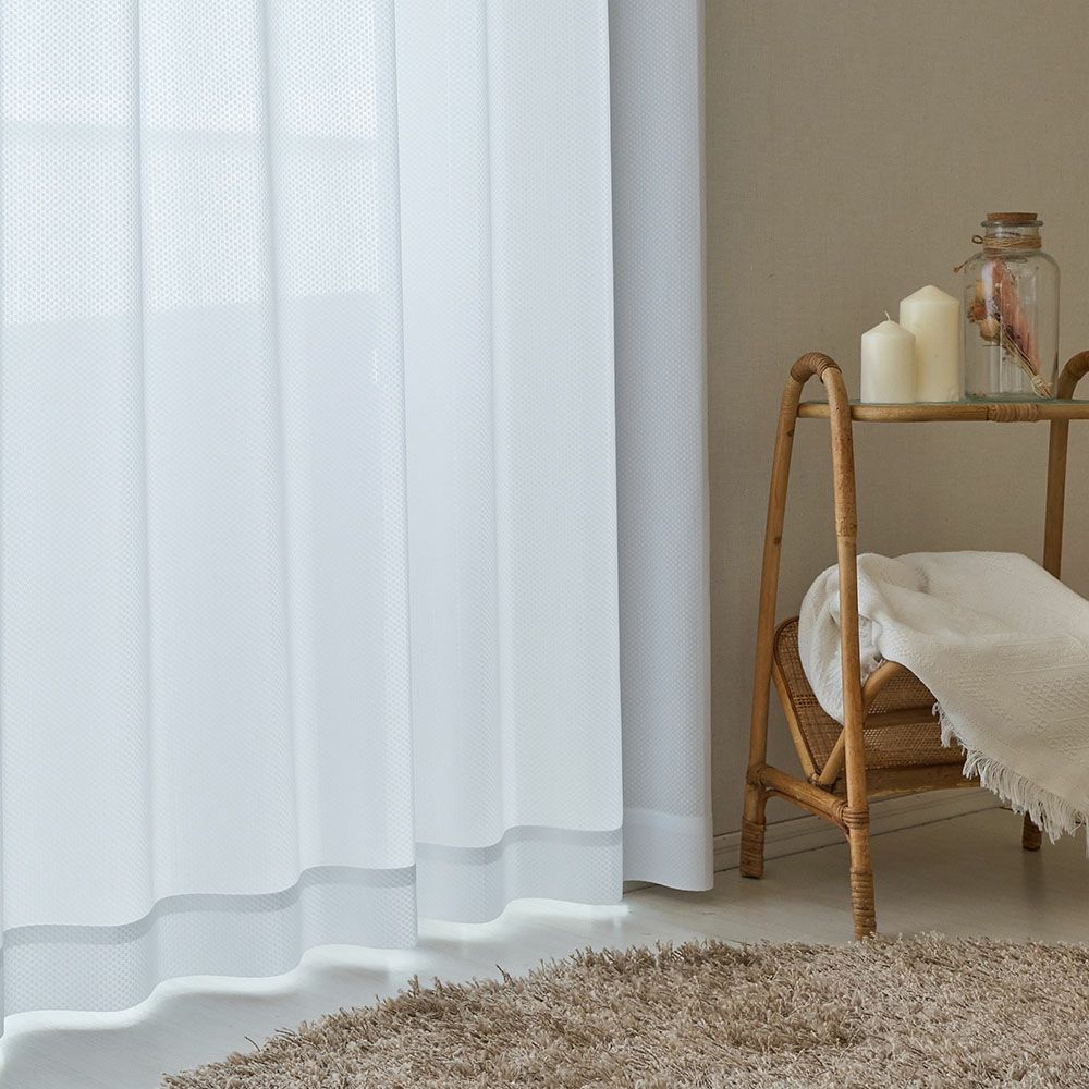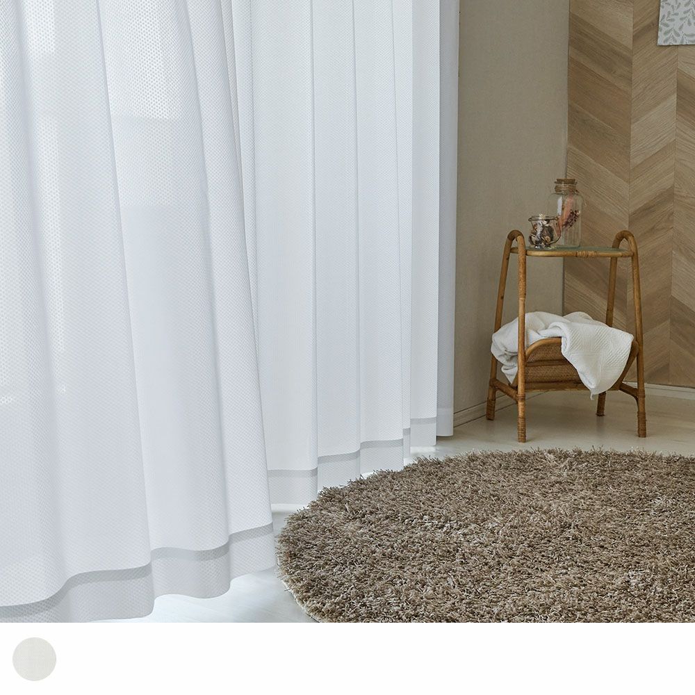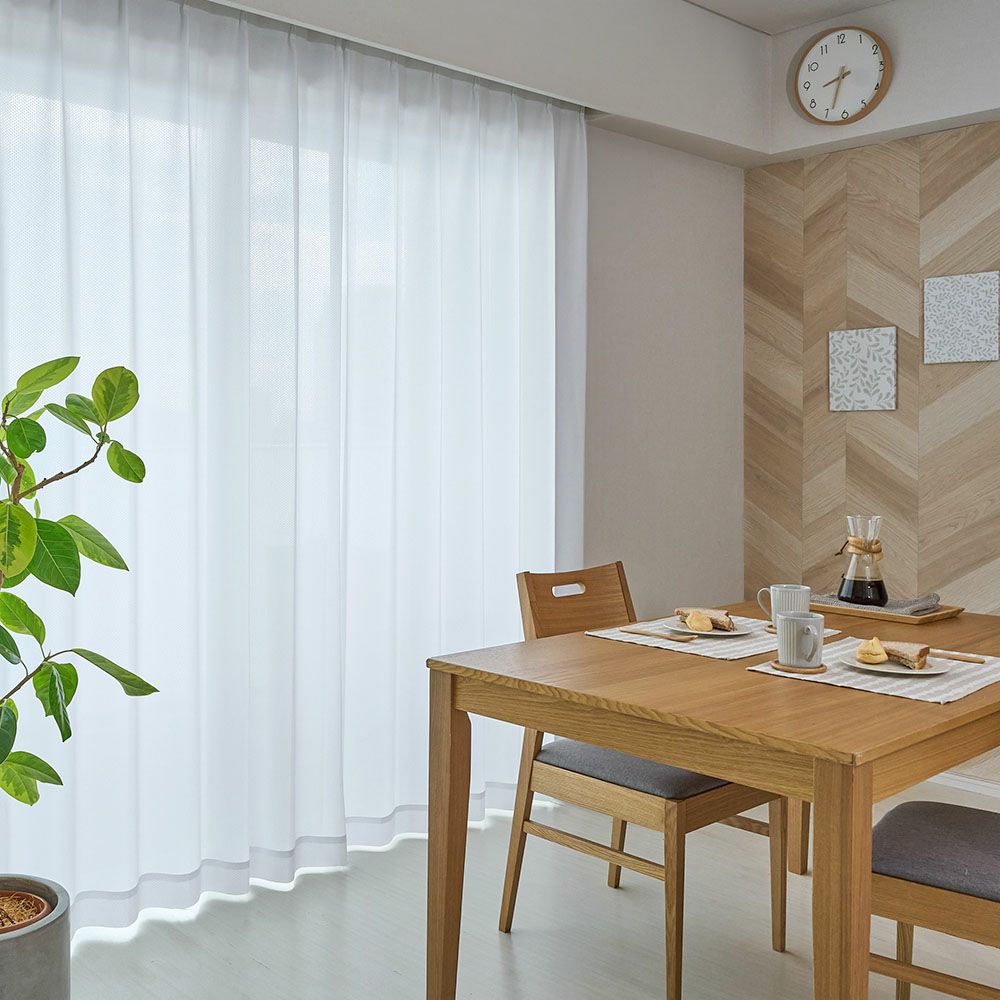 どんなカーテンにも、どんなインテリアにも取り入れやすい、シンプルなデザイン。ドットのような控えめな柄が、主張しすぎず、コーディネートを選ばない合わせやすいレースカーテンです。