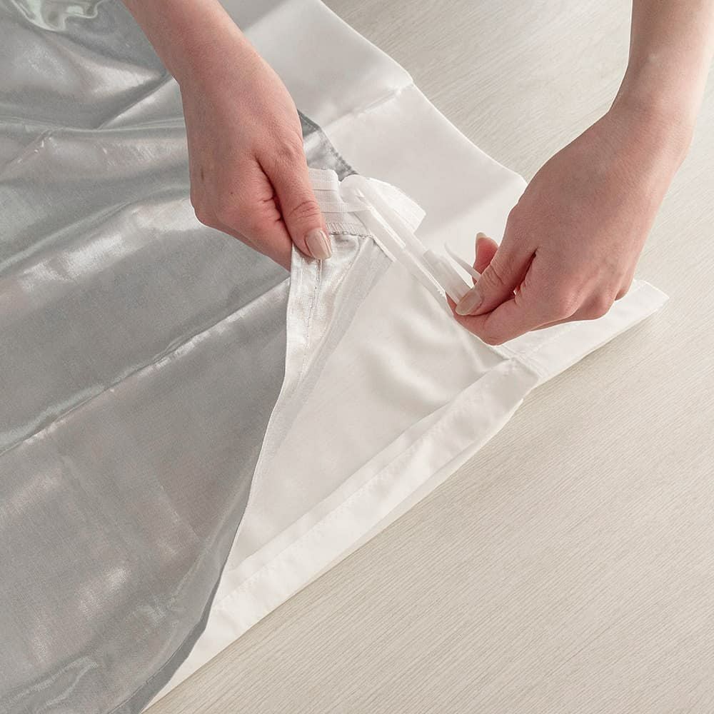 カーテンの裏側にブライト糸という光沢のある糸を使用することで、太陽光を鏡のように跳ね返し、日中外からお部屋の中を見えにくい状態にします。