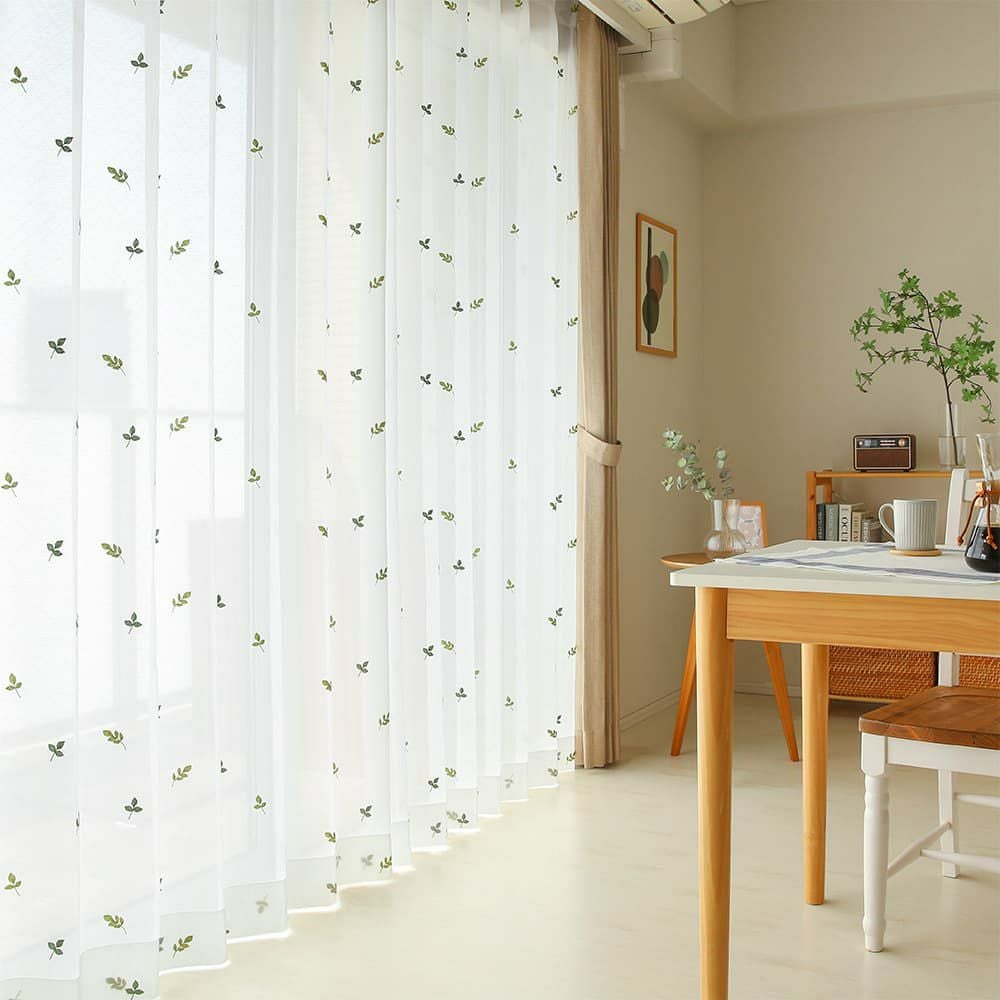 レースカーテンは白だけじゃない!優しいグリーンやピンク、きれいなカラーが彩るカラーレースカーテンを窓辺に飾っておしゃれに。日々の暮らしを輝かせませんか。