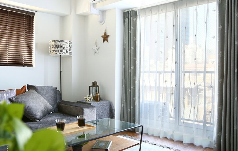 白で無地のイメージが強いレースカーテンですが、柄物に変えてみると淡く色柄が浮かびあがり、おしゃれな空間に様変わりします。