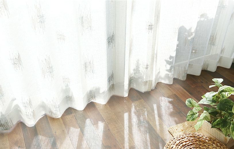 UVカットレースカーテンは太陽の光を取り入れながら、紫外線をカット。お肌だけでなく、フローリングや家具の劣化・日焼けを防ぐことができます。