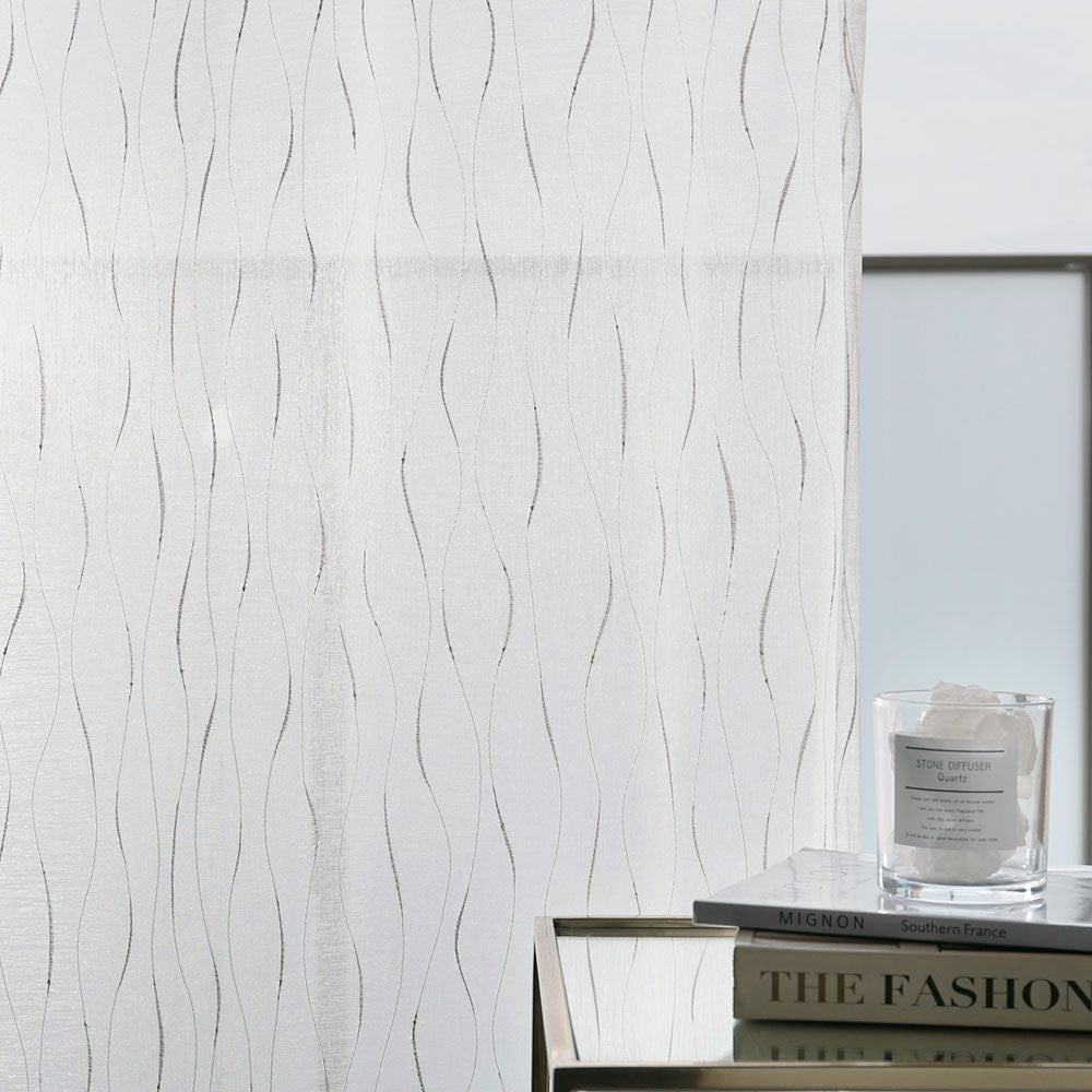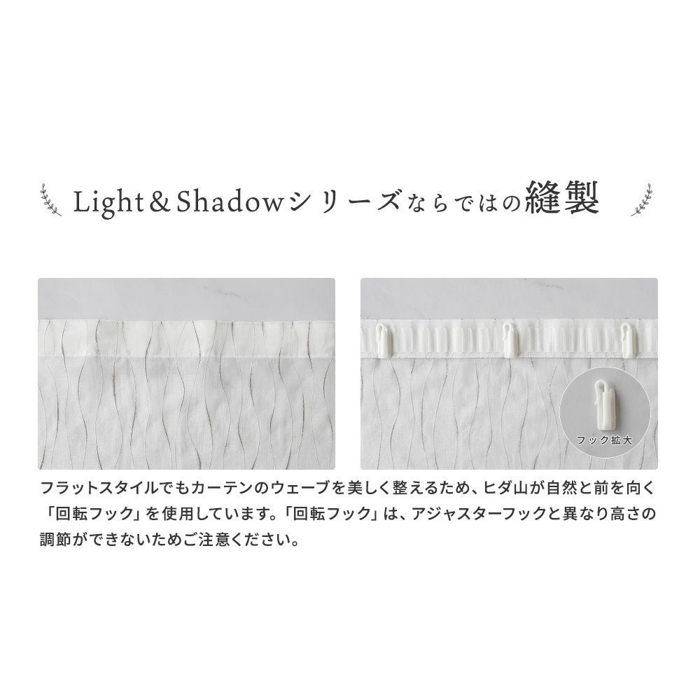 ミラーレースカーテンとはブライト糸を編み込むことで、ミラーのように反射させ昼間のプライバシーを守る、外から透けにくいレースカーテン。遮光カーテンでいう2級・3級のように程よく光を取り込み、室内からは外の景色を楽しめるのがポイントです。