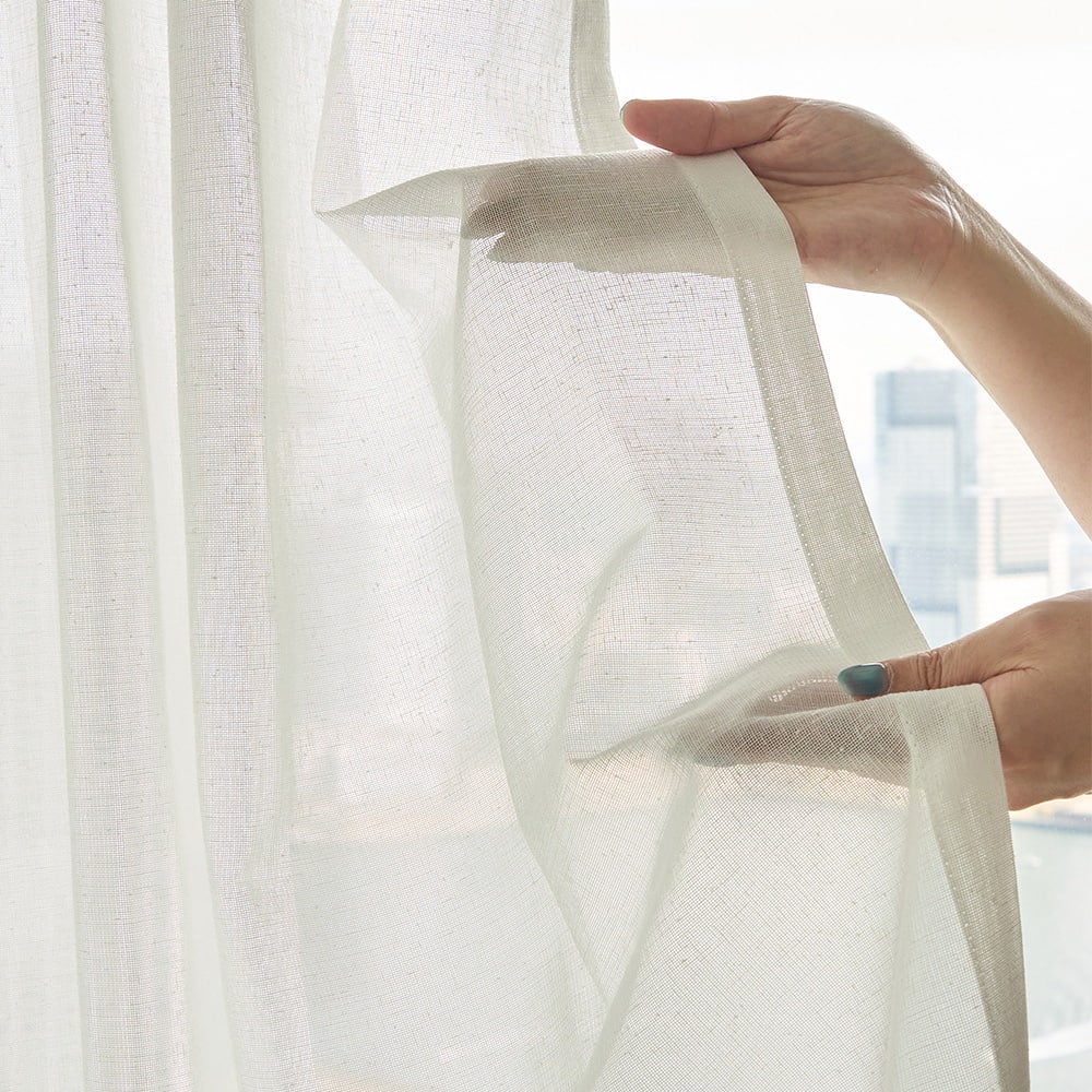 自然な陽の光や風を感じることができる、独特な風合いのリネンレースカーテン。天然素材の麻と過ごす心地よいおうち時間を、あなたのお部屋にも。