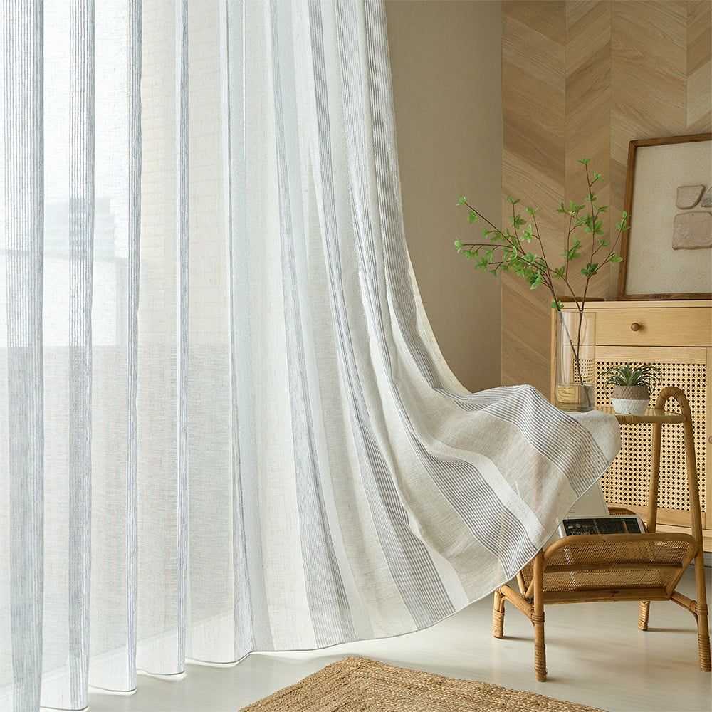自然な陽の光や風を感じることができる、独特な風合いのリネンレースカーテン。天然素材の麻と過ごす心地よいおうち時間を、あなたのお部屋にも。