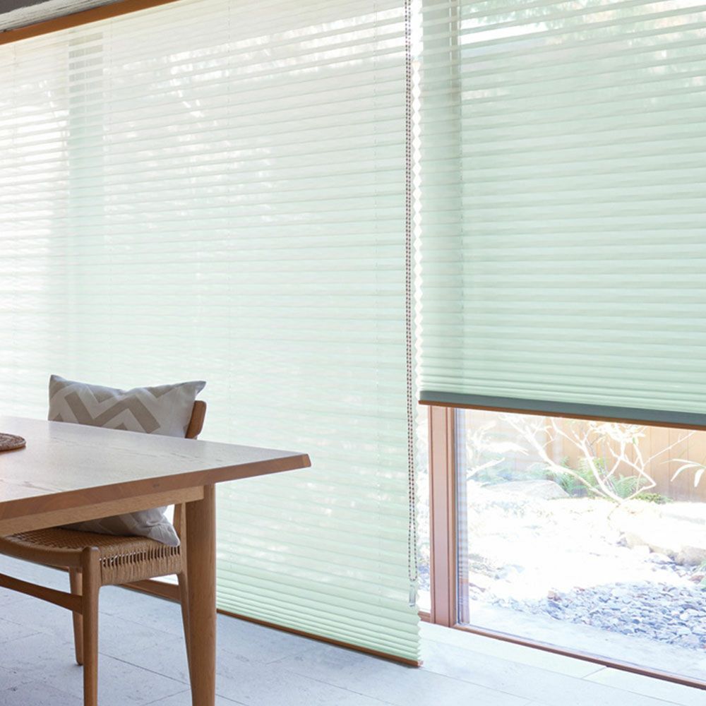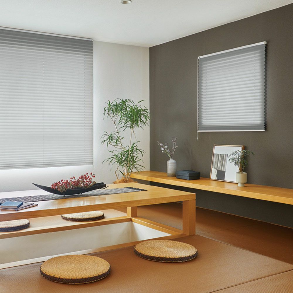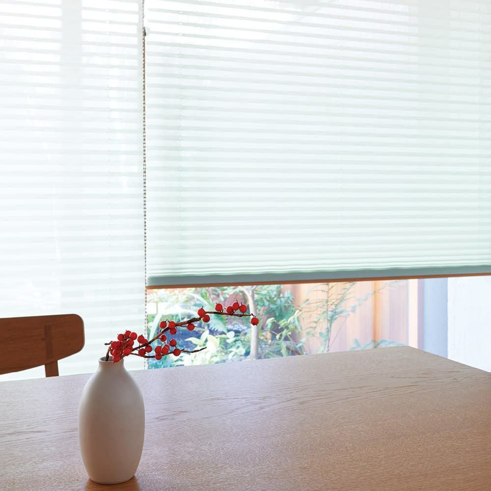 プリーツスクリーンは、じゃばら状の生地を上下に動かす、すっきりとした窓まわりアイテム。